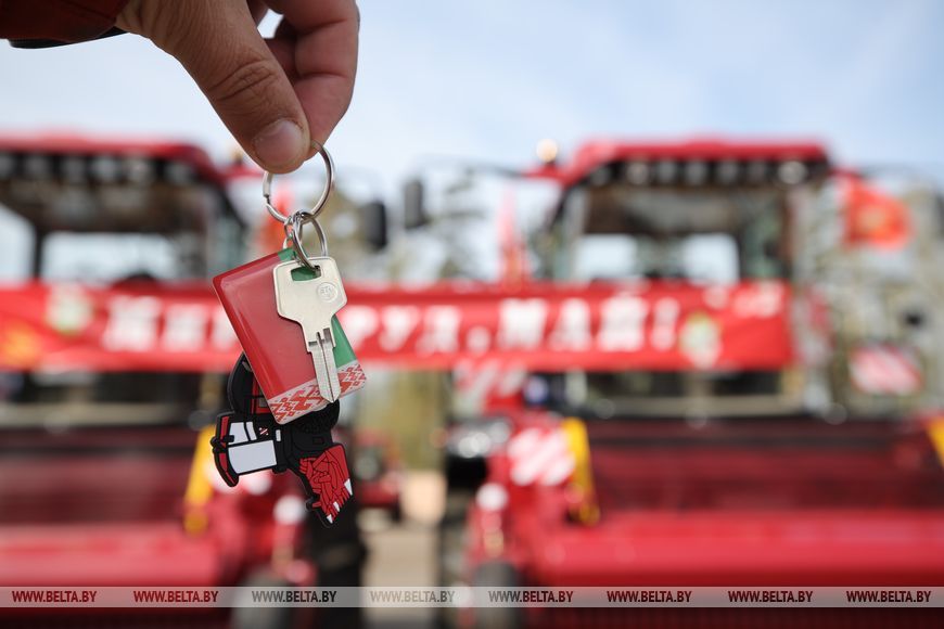 Поздравляя представителей хозяйств с этим знаковым событием, председатель Минского облисполкома Алексей Кушнаренко отметил, что сегодняшнее событие - продолжение хорошей традиции. Так, в прошлом году хозяйства получили 80 комбайнов, что стало символичным в год юбилея Победы.
