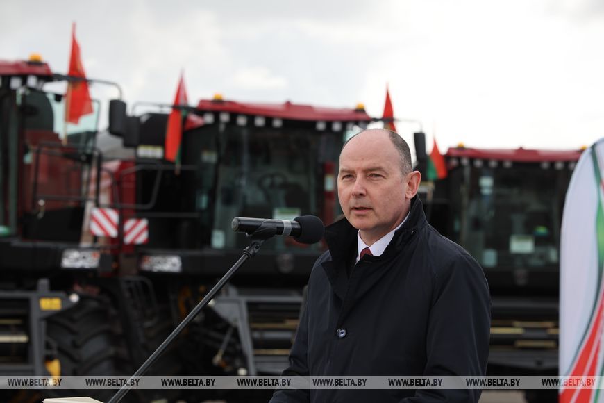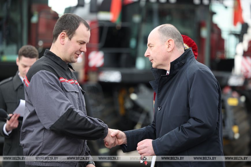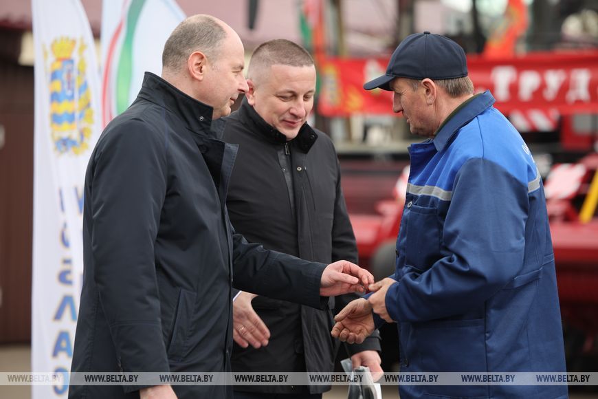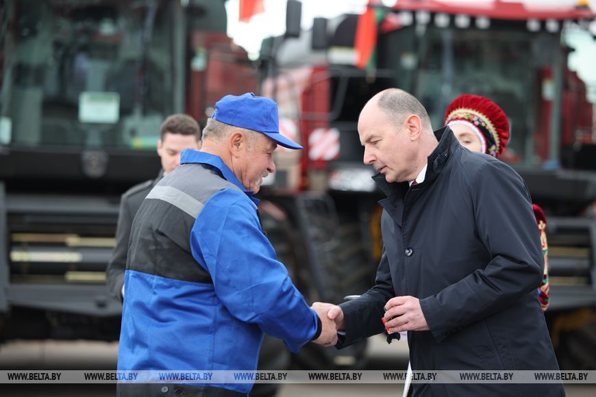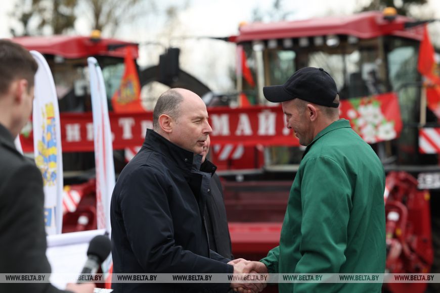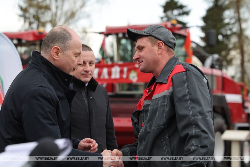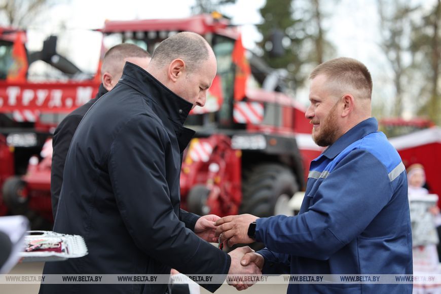 "Я рад в преддверии 1 Мая поздравить вас с обновлением автопарка. И выразить слова признательности и благодарности всем, кто своим нелегким трудом вносить вклад в продовольственную и экономическую безопасность нашей страны. Символично, что в Год белорусской женщины на нашем мероприятии присутствуют представительницы прекрасного пола, чьи заслуги достойны самой высокой оценки. Уверен, что на новых комбайнах они покажут настоящий мастер-класс", - отметил Алексей Кушнаренко.
