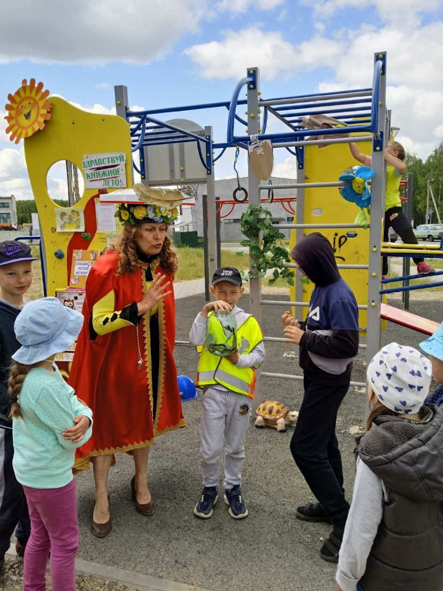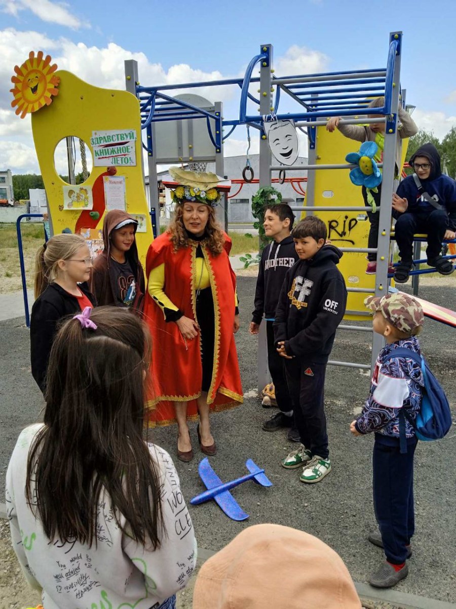 Юные жители стали участниками уличной арт-акции “Книжка вышла погулять” и активно выступали в роли героев импровизированного показа коротких рассказов современных писателей с летними сюжетами. Истории из книжного сундучка помогли ребятам осмыслить актуальные во время летних каникул проблемы отдыха и развлечения, взаимоотношений со сверстниками и младшими братьями и сёстрами, культурного этикета, милосердия, безопасного поведения в быту и на транспорте.