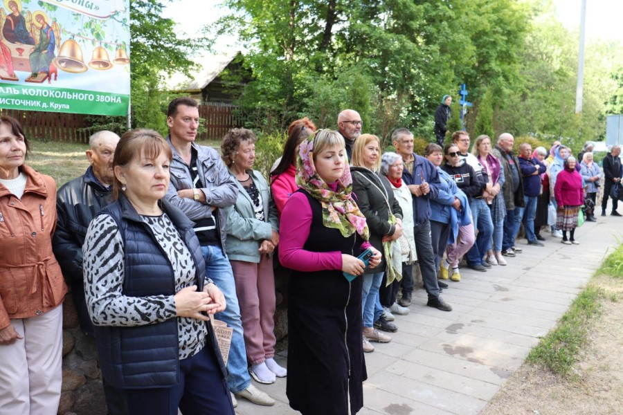Сразу после автокрестного хода от Никольского храма на святом источнике состоялся молебен с водоосвящением, затем был концерт колокольного звона в исполнении звонарей храмов Минска и Березинского благочиния, а также концерт духовных песнопений любительского хора Всехсвятского Прихода г. Минска.