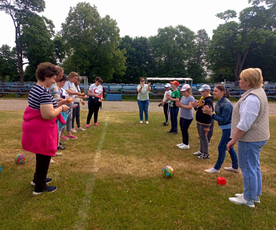 На городском стадионе города прошла совместная игровая программа среди посетителей отделения социальной реабилитации, абилитации инвалидов ГУ «Березинский территориальный центр социального обслуживания населения» и воспитанников ГУСО «ЦКРОиР Березинского района». Ребята вместе приняли участие в различных играх и конкурсах, весело поиграли с мячами, потренировались в набивании теннисного шарика на ракетке.