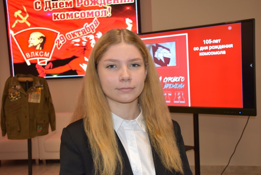 Вядучая мерапрыемства метадыст аддзела маркетынга і сацыякультурнай дзейнасці ЦБС Вікторыя Багадзяж спачатку прыгадала некаторыя старонкі з гісторыі стварэння і развіцця камсамола: - 29 кастрычніка 1918 года на першым Усерасійскім з’ездзе саюзаў рабочай і сялянскай моладзі было прынята рашэнне аб стварэнні Расійскага камуністычнага саюза моладзі (РКСМ). Пазней гэтая арганізацыя двойчы пераназывалася: у 1924 годзе ёй было прысвоена імя Леніна, а ў 1926-м у назве з’явілася слова "ўсесаюзны". У выніку і атрымаўся УЛКСМ - Усесаюзны Ленінскі камуністычны саюз моладзі.