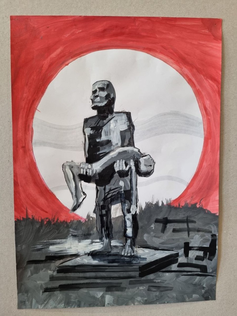 На рисунках детей - боль и память, надежда и уверенность в том, что пока мы помним о невинных людях, погибших в том огне, такое НИКОГДА не повторится.