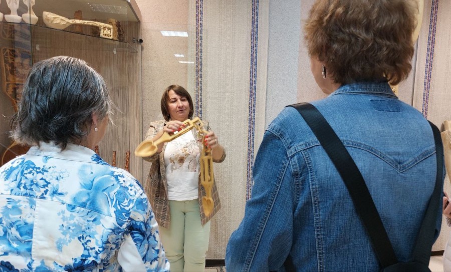 Люди, которые сами постоянно в творчестве и рядом с творчеством, с большим интересом посетили постоянно действующие выставки керамики и деревянной ложки, декоративно-прикладного творчества. Впечатлила и выставка "След войны в моей семье".