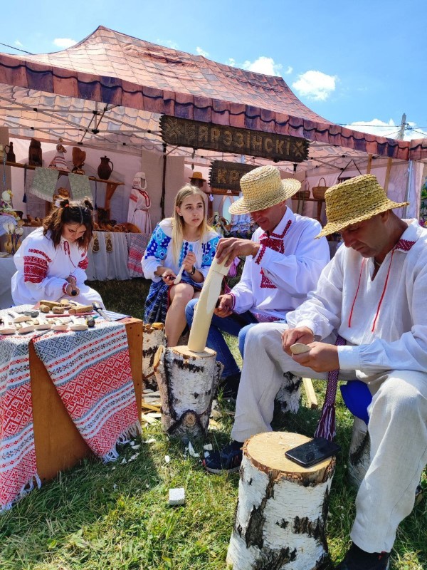 Мастера Березинского районного центра ремёсел отправились на праздник не с пустыми руками. Конечно, с деревянной ложкой - нашим брендом. И даже не одной! И даже уроки по резьбе преподносят! Посмотрите, сколько желающих присоединиться к мастер-классам по этому народному ремеслу!
