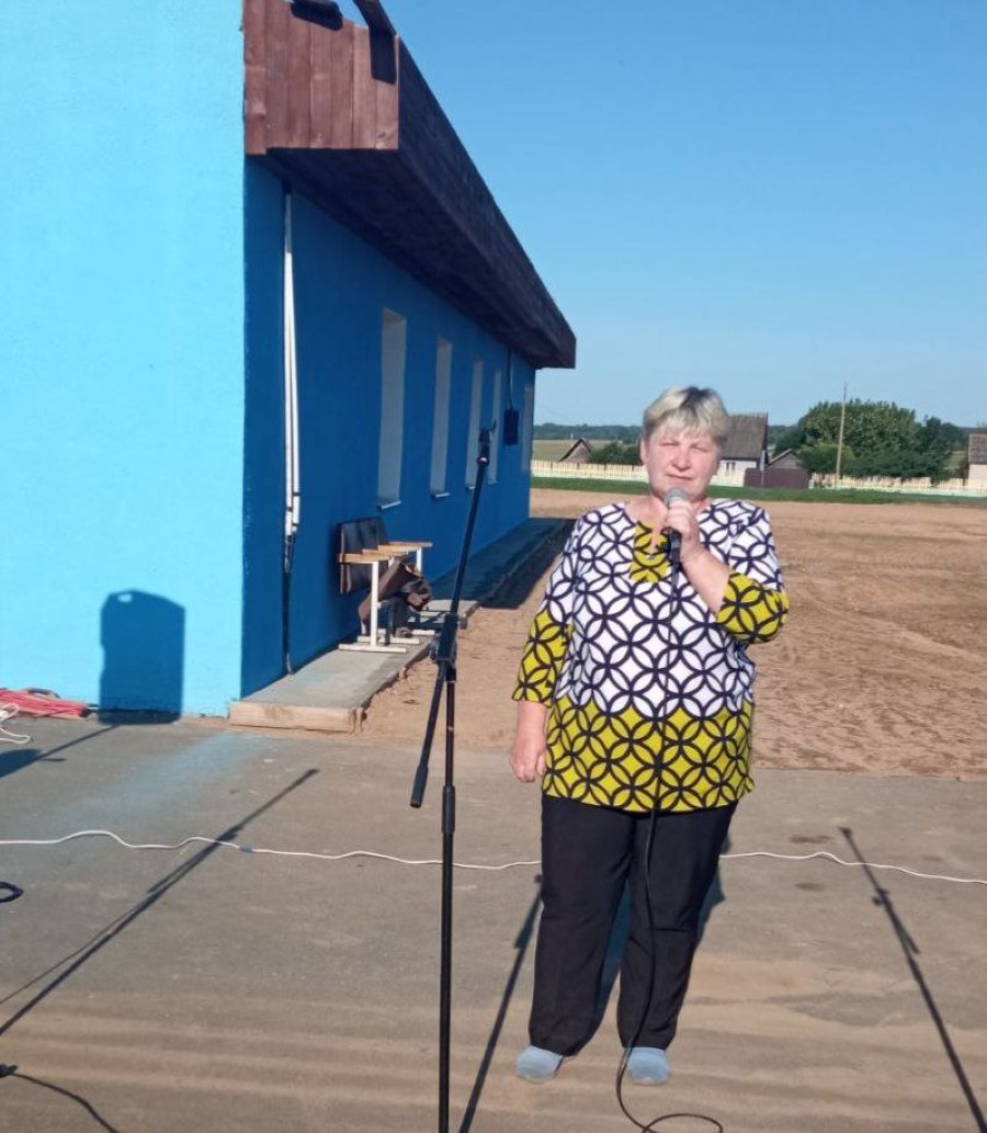 В этот раз для участников уборки ОАО "Первомайский" оно началось необычно. Сюда приехал автоклуб Березинского РЦК. Чтобы к привычному гул техники подмешать непривычный для раннего утра на мехдворе звук музыки и песни. Но главное- сказать спасибо за труд! Сказать спасибо за хлеб на нашем столе! Неоднажды произнесла слова благодарности заведующая автоклубом Любовь Пинчук и всякий раз они подтверждались музыкальными подарками от солистов группы "Радость". Не могла остаться в стороне заведующая Микуличским сельским клубом-библиотекой Любовь Пенкрат.