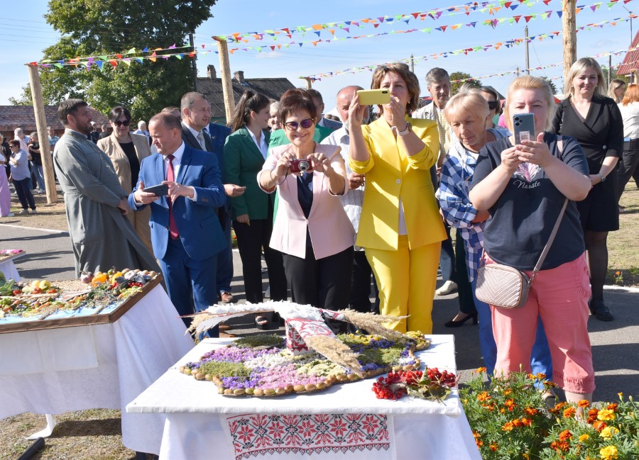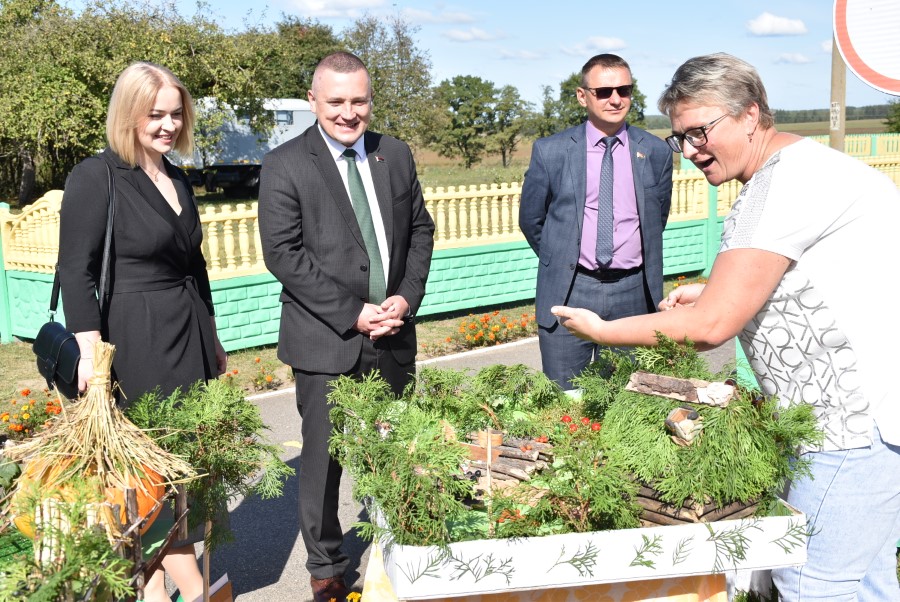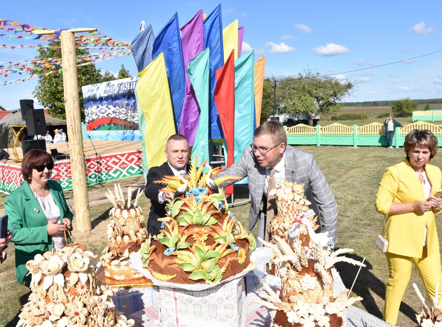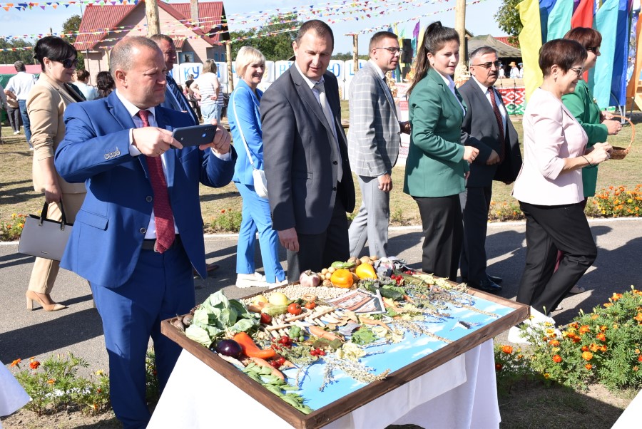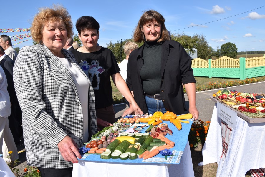 А вот и итоги проведенного в самом начале праздника конкурса на лучшее подворье. Се судьи сошлись в том, что наиболее удачным оно было у хозяев дожинок, ОАО «Первомайский», на втором и третьем месте расположились ОАО «Погостский» и СУП «Здравушка-агро».