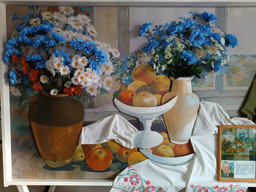 А вот в субботу 16 сентября пройдут областные «Дожинки» в Солигорске. Конечно, делегация из Березино тоже будет там, и не с пустыми руками. Сотрудники районной библиотеки изготовили две картины. Как рассказывает директор учреждения Наталья Маевская, одна картина выполнена в форме 3D, где изображена инфраструктура района и голуби, как символ мира. Ее автор – сотрудник библиотеки Александр Кудряшов. Другая, под названием «Натюрморт» выполнена уроженцем Дулеб Николаем Казакевичем. Сотрудники библиотеки украсили её природными материалами. Кроме библиотеки одну картину из природных материалов подготовил районный центр культуры, и 3D-картину – школа искусств.