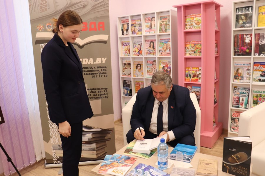 На сустрэчу з юнымі чытачамі і бібліятэкарамі прыехалі вядомыя ў краіне пісьменнікі: дырэктар-галоўны рэдактар Выдавецкага дома “Звязда” старшыня Саюза пісьменнікаў Беларусі Алесь Карлюкевіч, намеснік рэдактара часопіса “Алеся” Алена Брава, кіраўнік клуба паэтаў і кампазітараў “Жывіца” Ірына Карнаухава, дзіцячая пісьменніца, прадстаўніца Мінскага гарадскога аддзялення СПБ Іна Фралова, а таксама начальнік аддзела маркетынга Выдавецкага дома “Звязда” Святлана Ганцарэвіч.