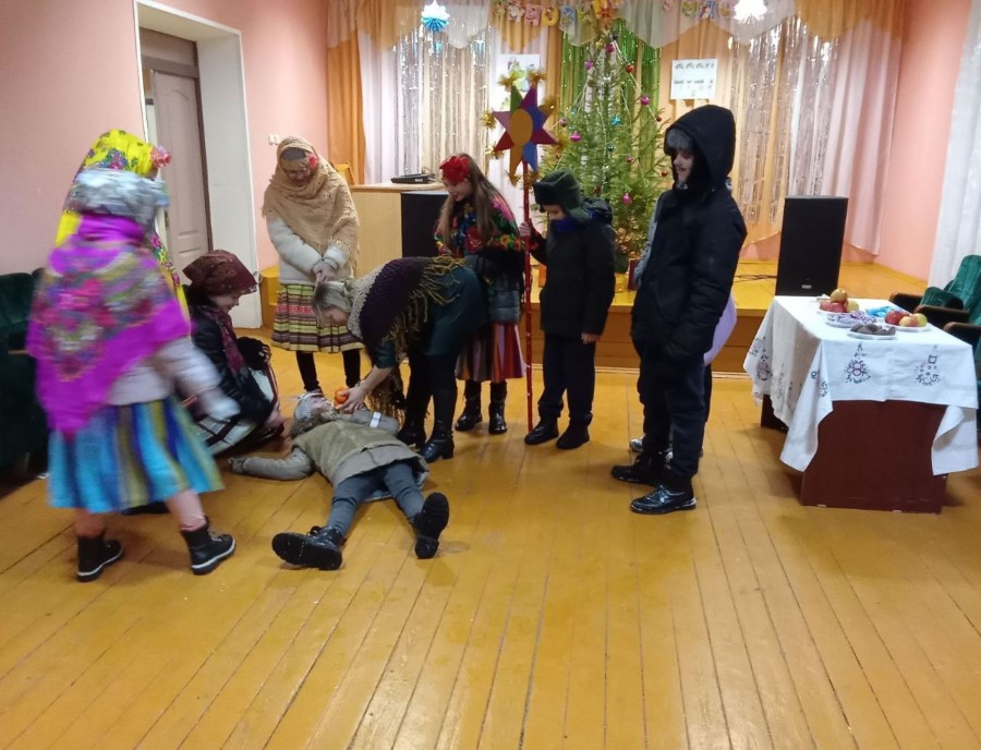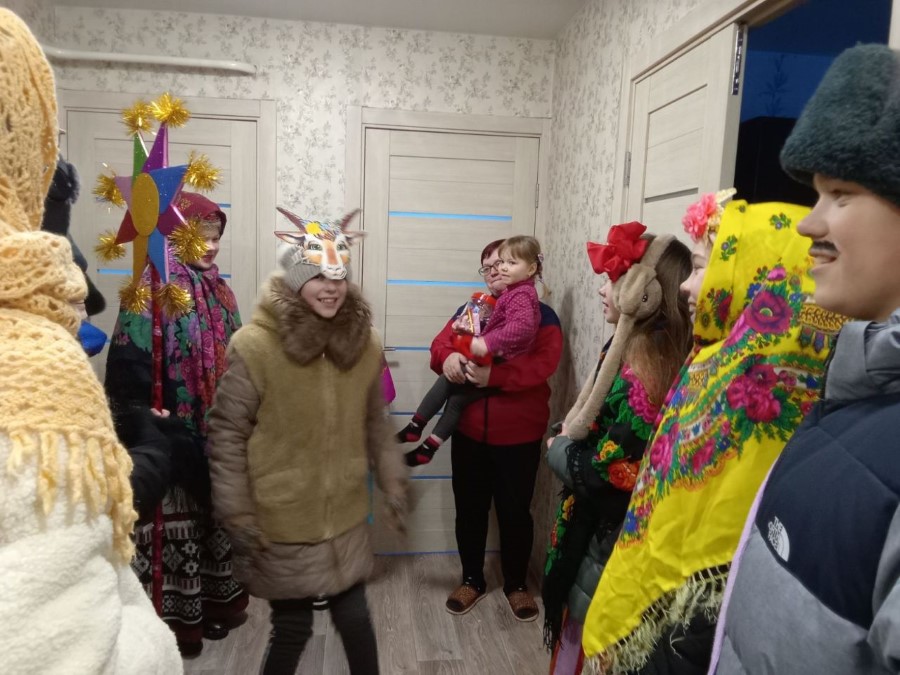 Ребята показали колядную программу, с которой они отправились поздравлять жителей аг. Уша. Заходя в дома они приветствовали хозяев, исполняли колядные песни, желали здоровья, семейного благополучия, богатого урожая и достатка в доме. Хозяева принимали ребят очень радушно, щедро одаривали угощениями.