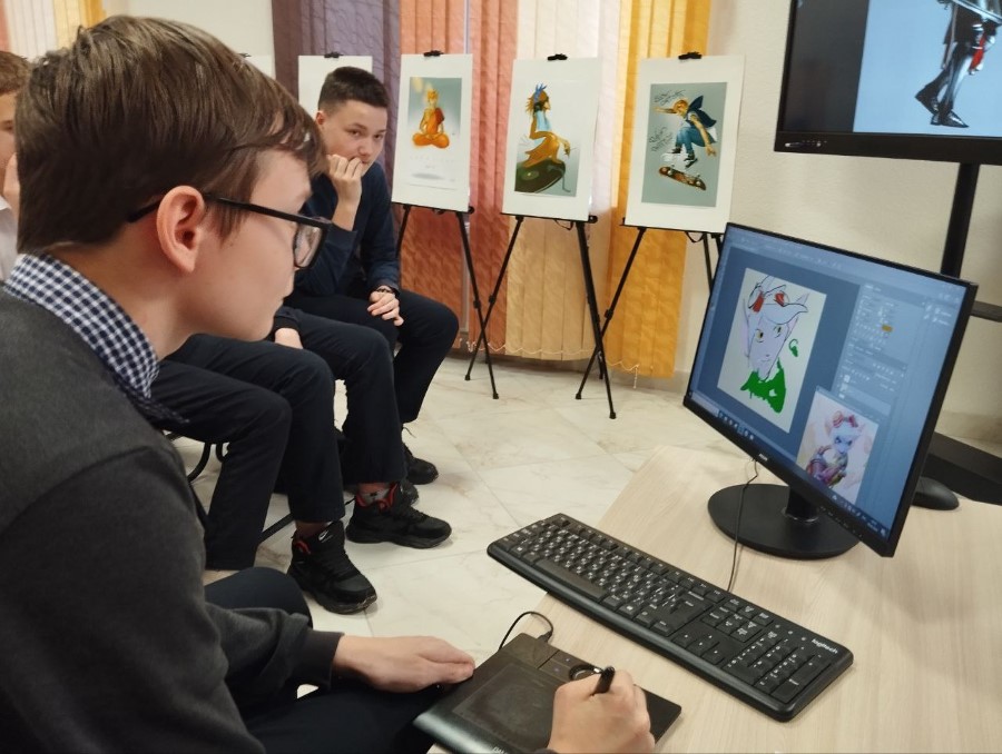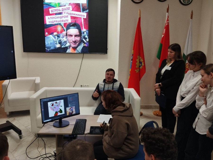 На встречу были приглашены учащиеся 8-ых классов СШ№2 г.Березино. Такая аудитория была выбрана не случайно. Ведь в будущем ребятам предстоит выбрать ту профессию, с которой они будут идти по жизни. В ходе мероприятия Александр поведал ребятам свою краткую биографию, рассказал, с чего начинался его путь к выбору профессии, как рождается картина, что является источником вдохновения, как можно заработать на своем творчестве, продемонстрировал ребятам свои работы в блокнотах, показал процесс создания мультипликационных героев с помощью графического планшета. Некоторые из присутствующих даже почувствовали себя в роли будущего художника. Ребята дружно поблагодарили Александра за ответы, советы, которые приоткрыл для них. А каждый из ребят понял, чтобы выбрать профессию - нужно в первую очередь определиться в своих интересах.