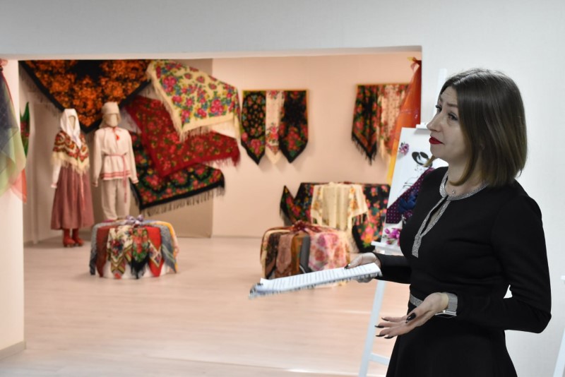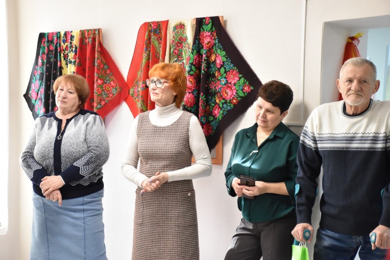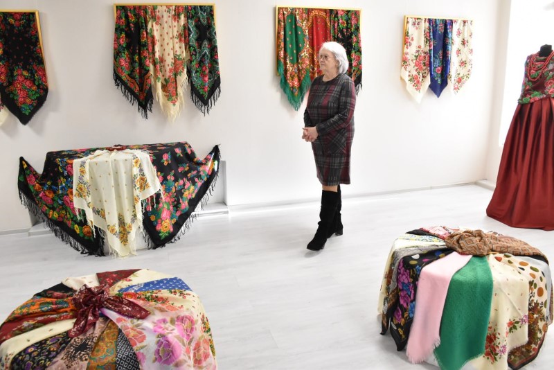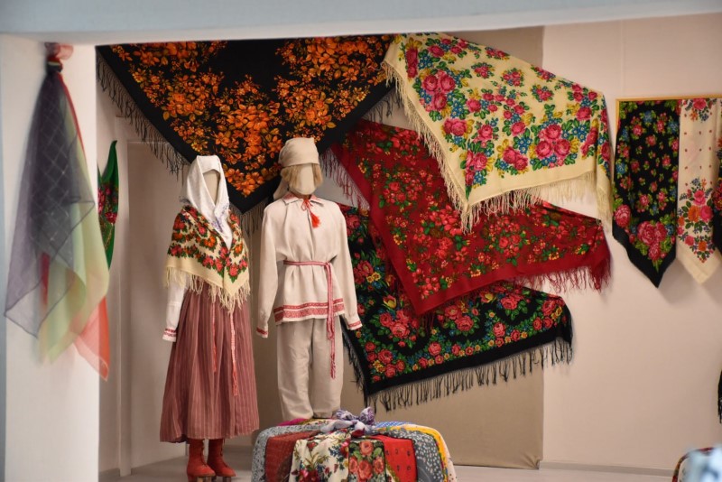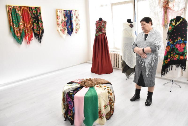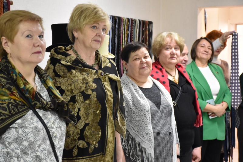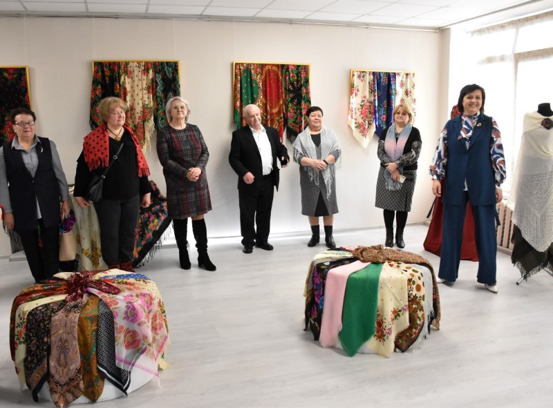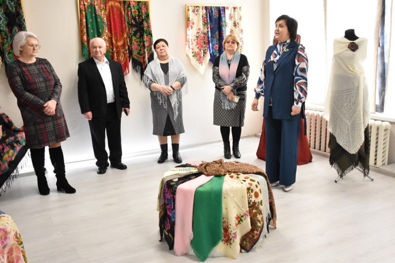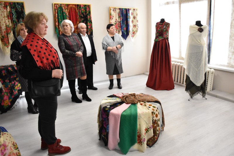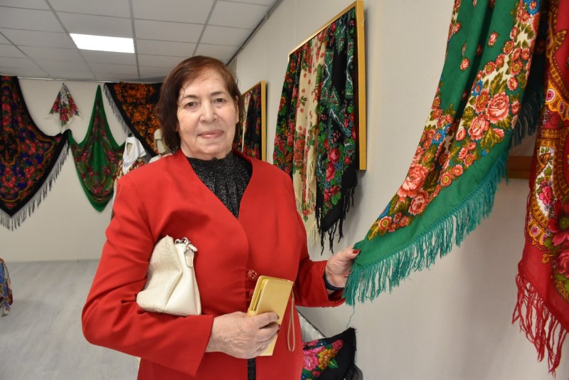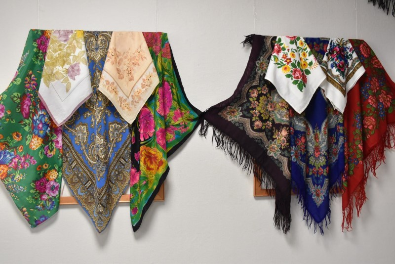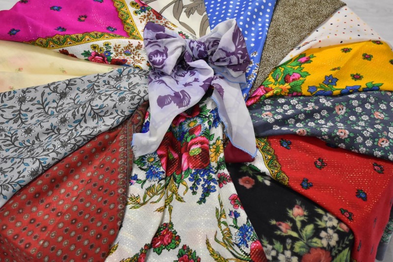 Восхищали всех своими разнообразными яркими расцветками и размерами прекрасные платки. А самый большой платок - размером 2,5 х 2,5 метра - подарила центру ремёсел Наталья Краснякова.