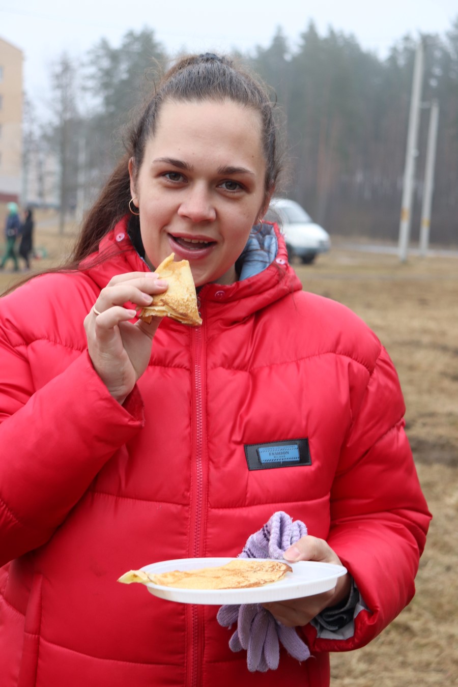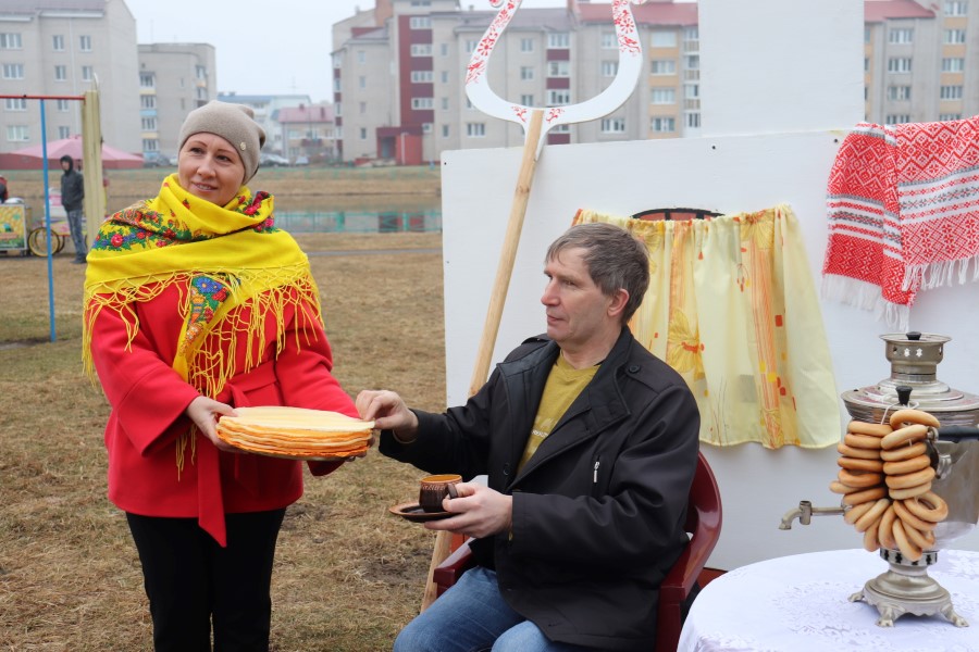 Уверен, что впечатлений на празднике набрались и остальные его посетители. А для этого от души постарались прежде всего культработники, организовавшие насыщенную программу. Были в ней и веселые скоморохи, и сама хозяйка праздника Масленица, которая угощала всех пушистыми блинами, и концертная программа с участием ансамблей «Лявониха», «Сустрэча» и «Радзина», и конкурсы для зрителей. Пришедшие сюда могли поучаствовать в беспроигрышной лотерее, выбрать сувенир, угоститься горячим чаем с блинами или шашлыком, проверить свою спортивную форму, сделать снимок в оригинальной фотозоне, посетить уголок РОЧС… А, пожалуй, самым примечательным местом стал уголок, где прямо на колодке мастерицы-кулинары пекли блины и еще горячими раздавали их всем желающим, предлагая для вкуса ароматное варенье.