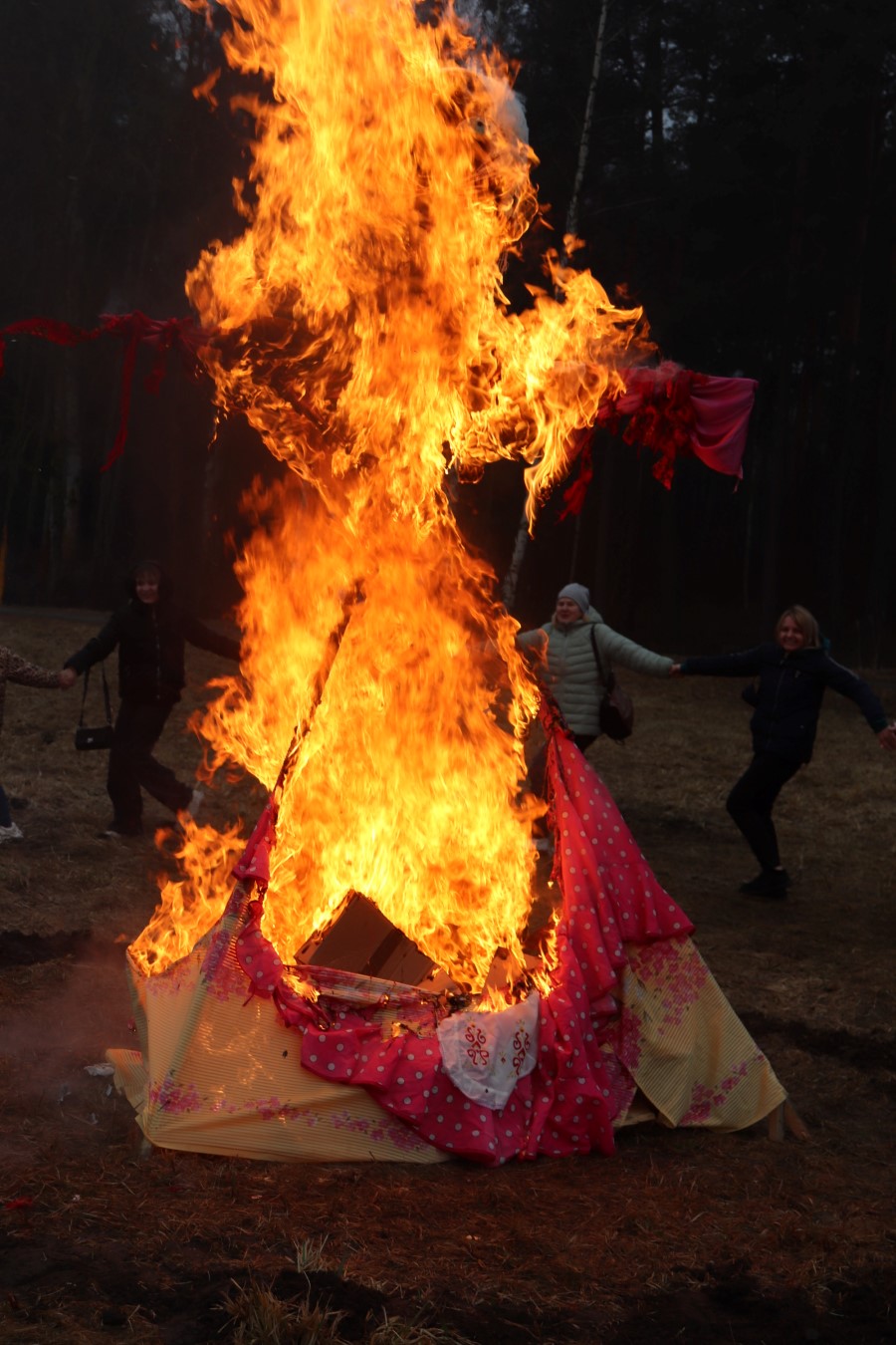 Завершением праздника стал обязательный обряд сожжения чучела зимы-матушки. Завели вокруг него хоровод участники праздника, и вот вспыхнуло оно под громкие и радостные крики. Что ж, прощай зима, возвращайся к нам только через год, а сейчас уступи весне дорогу, пусть властвует она, раздаривая всем людям тепло, свет и надежду на добро.