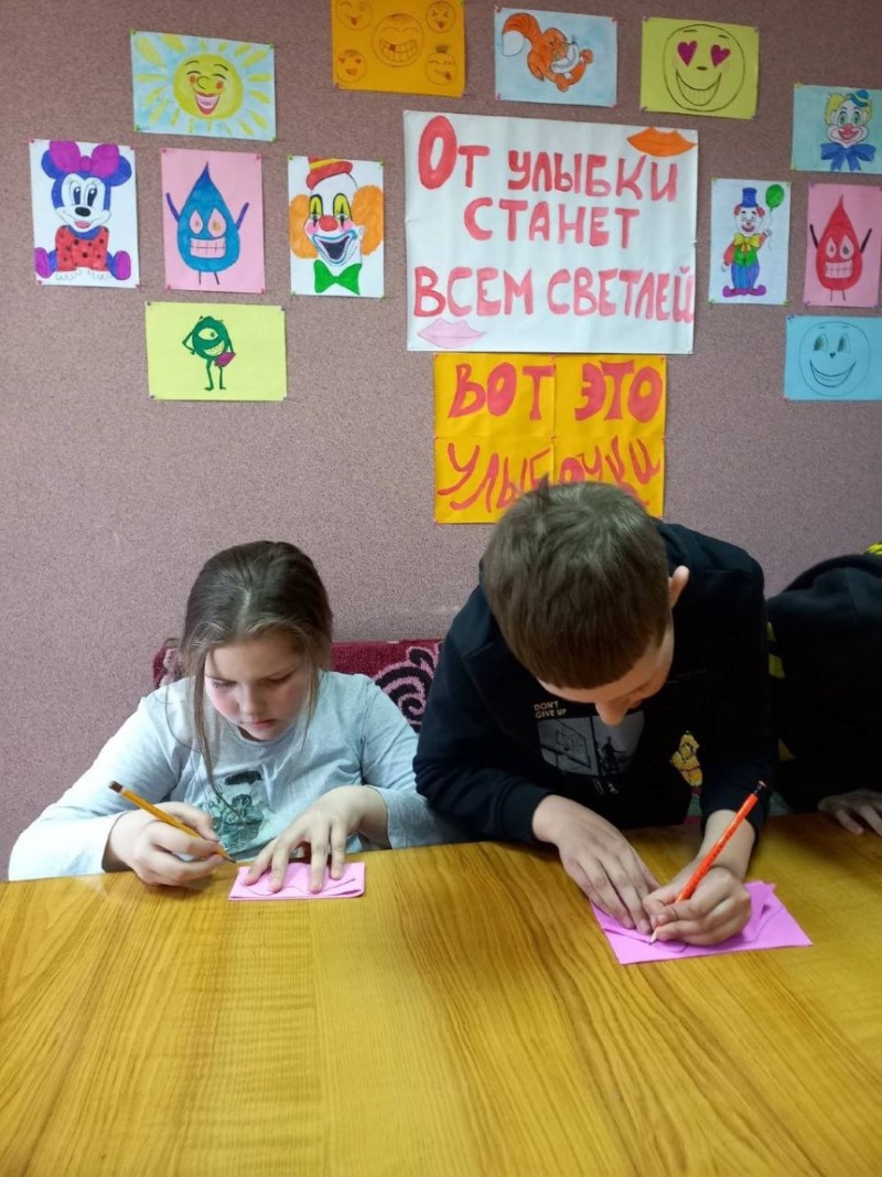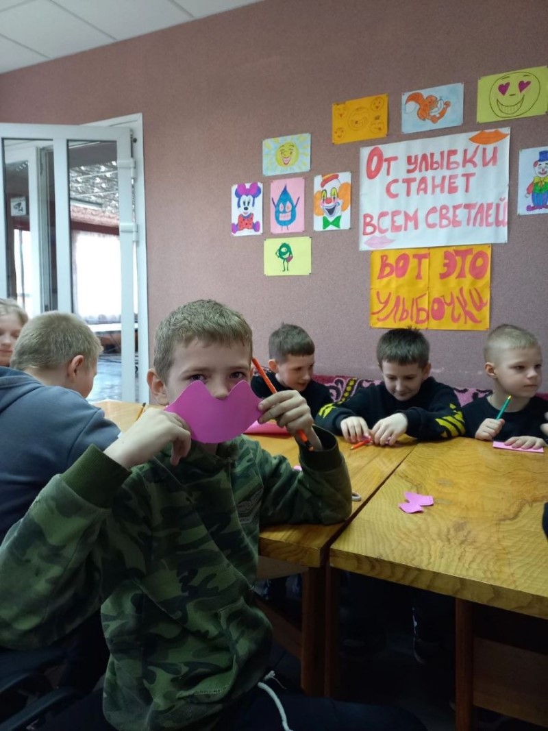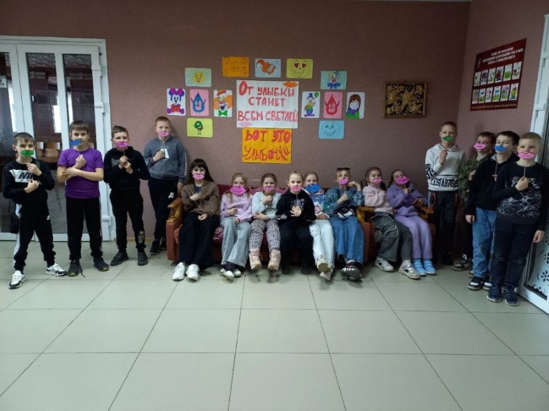 Напярэдадні на майстар-класе: "Разноцветные улыбки", дзеці малявалі чароўныя ўсмешкі, смайлікі, а таксама рыхтавалі касцюмы клоўнаў. Аформілі выставу дзіцячых малюнкаў: "От улыбки станет всем светлей! ".