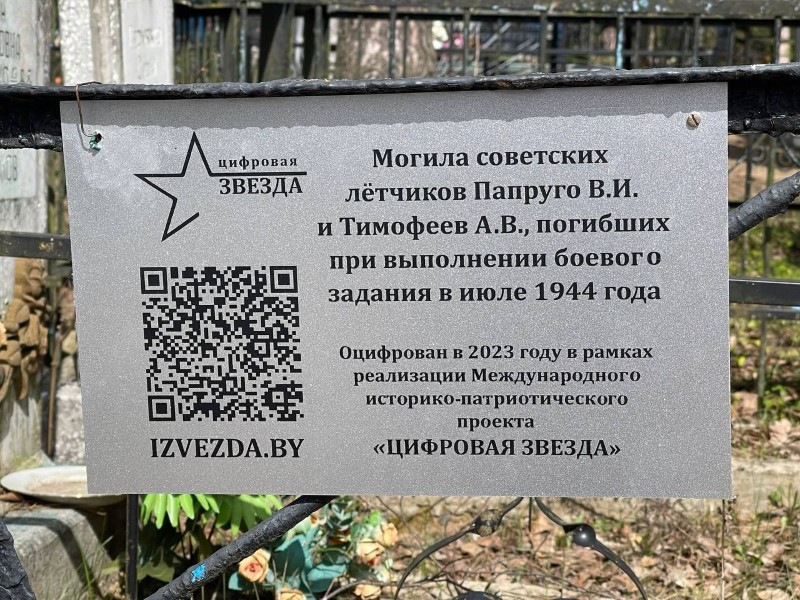 Состоялись открытие табличек с QR-кодом у могилы советских летчиков Папруга В.И. и Тимофеева А.В., погибших при выполнении боевого задания в июле 1944 года.