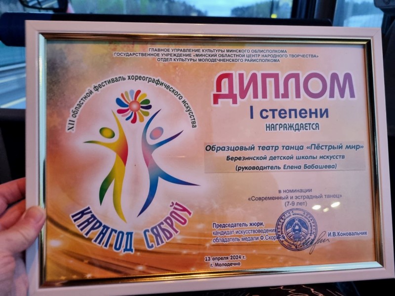Образцовый театр танца "Пёстрый мир" ГУО "Березинская детская школа искусств" (рук. Бабашева Е.М.) стал обладателем Диплома I степени. Поздравляем!!!