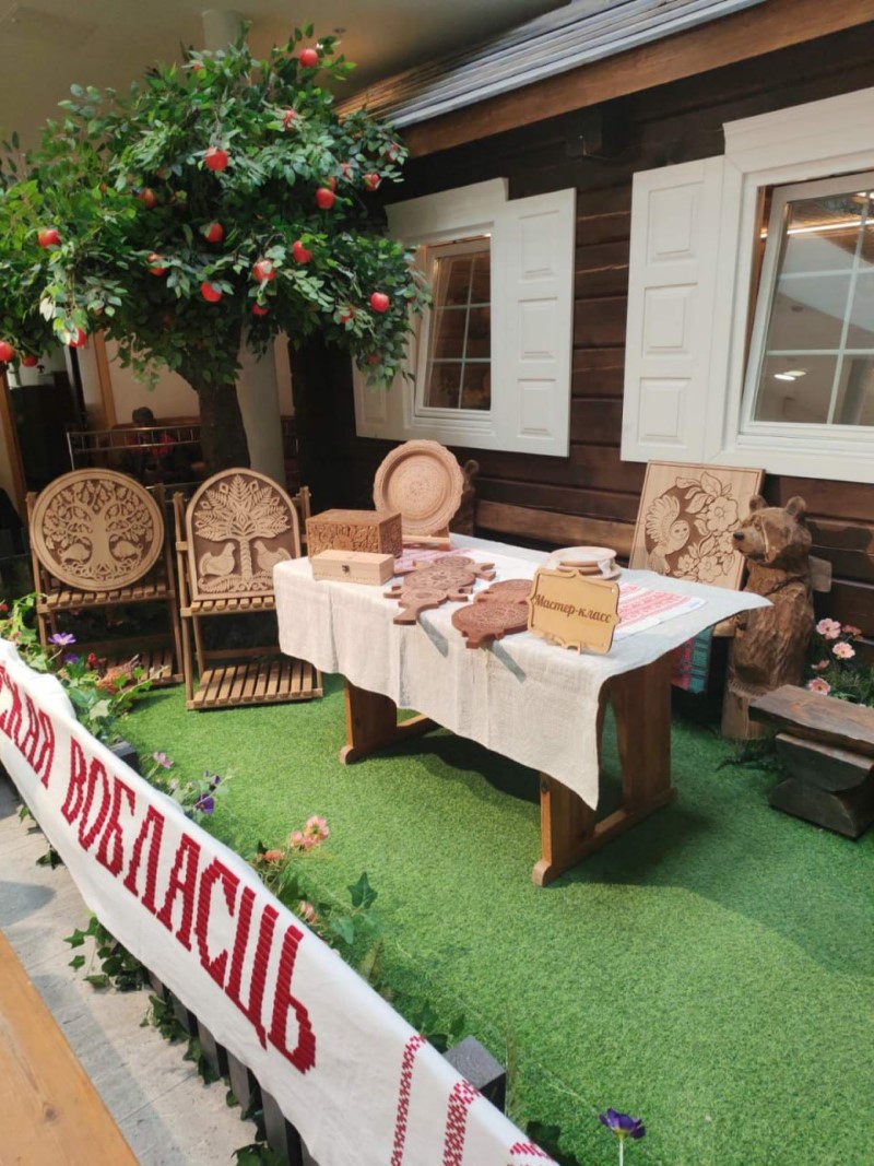 Частью экспозиции будет белорусская хата. Внутри оформлена традиционными элементами быта: ткацкий станок, столы, лавки, «люлька», элементы НКН «Маляванки», рушники, покрывала, соломенные, глиняные изделия и др. Площадка перед хатой будет оформлена также в белорусских национальных традициях, перед входом будут представлены мастер-классы с участием мастеров.