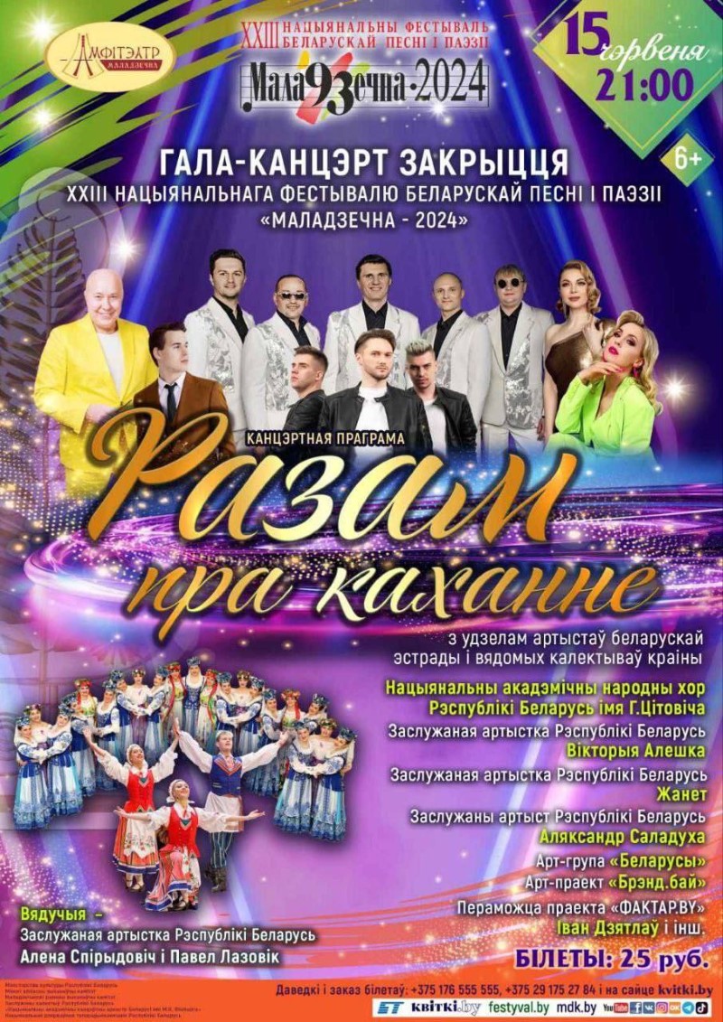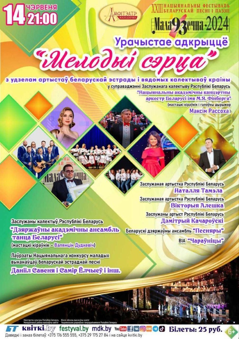 14 и 15 июня состоятся главные мероприятия: Гала-концерты открытия и закрытия фестиваля на сцене летнего Амфитеатра и Национальный конкурс молодых исполнителей белорусской эстрадной песни, который пройдет во Дворце культуры.