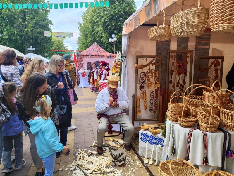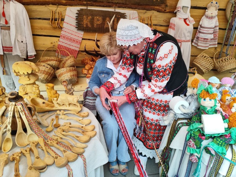 На гэты раз на Нацыянальным фестывалі песні і паэзіі ў Маладзечне. Дэманструюць свае майстэрства і таленты і шчыра дзеляцца імі з усімі жадаючымі. Толькі паглядзіце колькі жадаючых пазнаёміцца з народнымі рамёствамі і павучыцца!