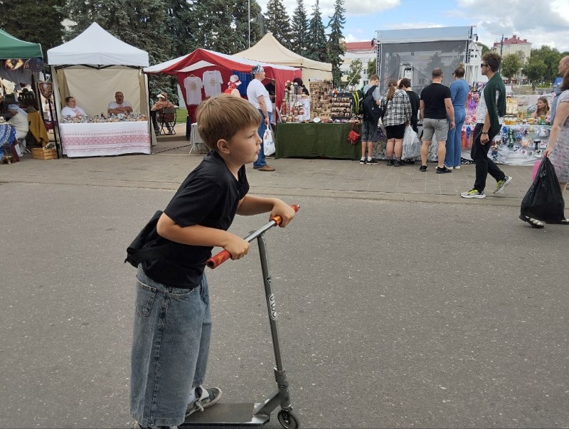 Прыемна, што нямала жадаючых было павучыцца народным рамёствам, у тым ліку такой няпростай справе, як разьба па дрэве. Яўген Восіпаў гасцей горада здзіўляў сваімі вырабамі, запрашаў прыняць удзел у майстар-класе. Вабіў вока гасцей і наш імправізаваны падворак. Ён ні хвіліны не пуставаў.