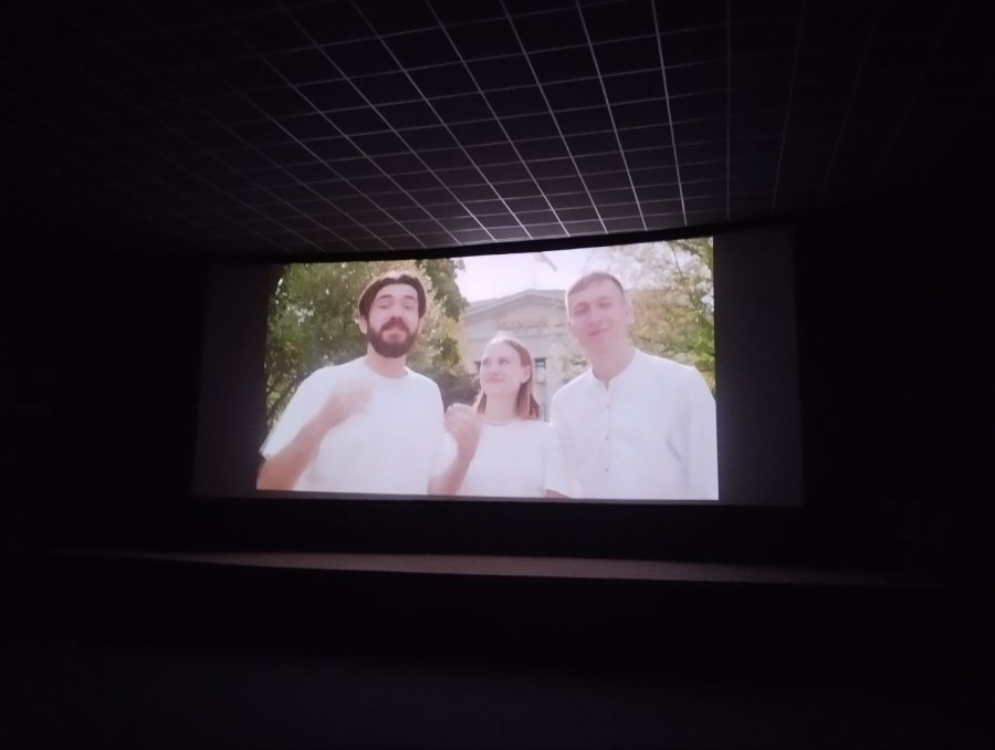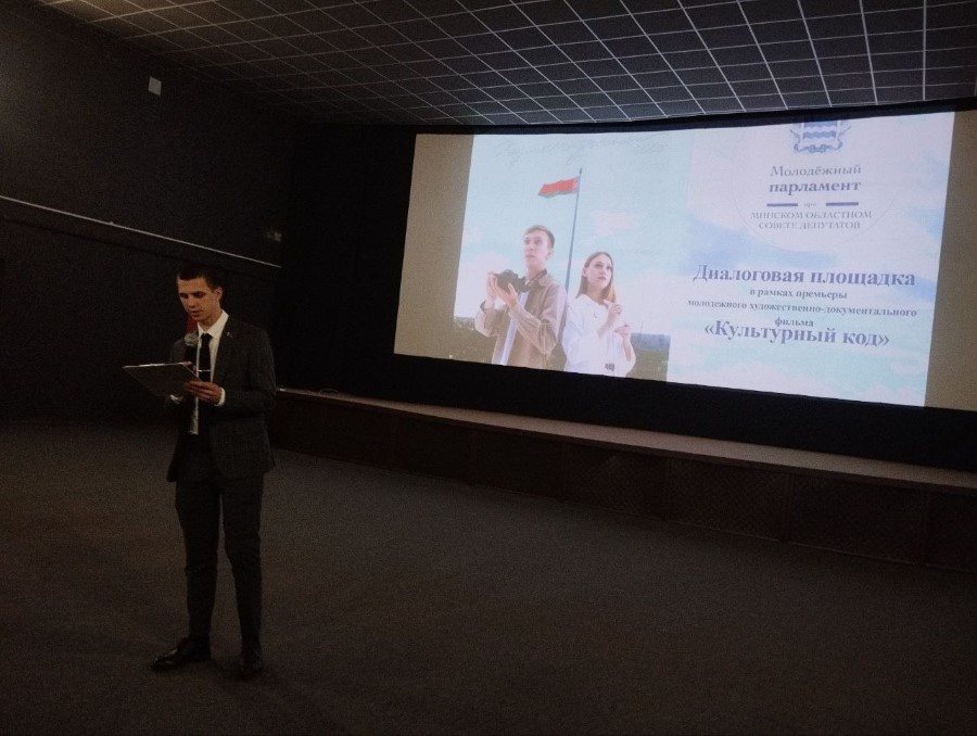 Перед показам прошла диалоговая площадка. Пообщались с ребятами члены молодежного парламента при Минском областном Совете депутатов Юлия Букель и Александр Кандраль.