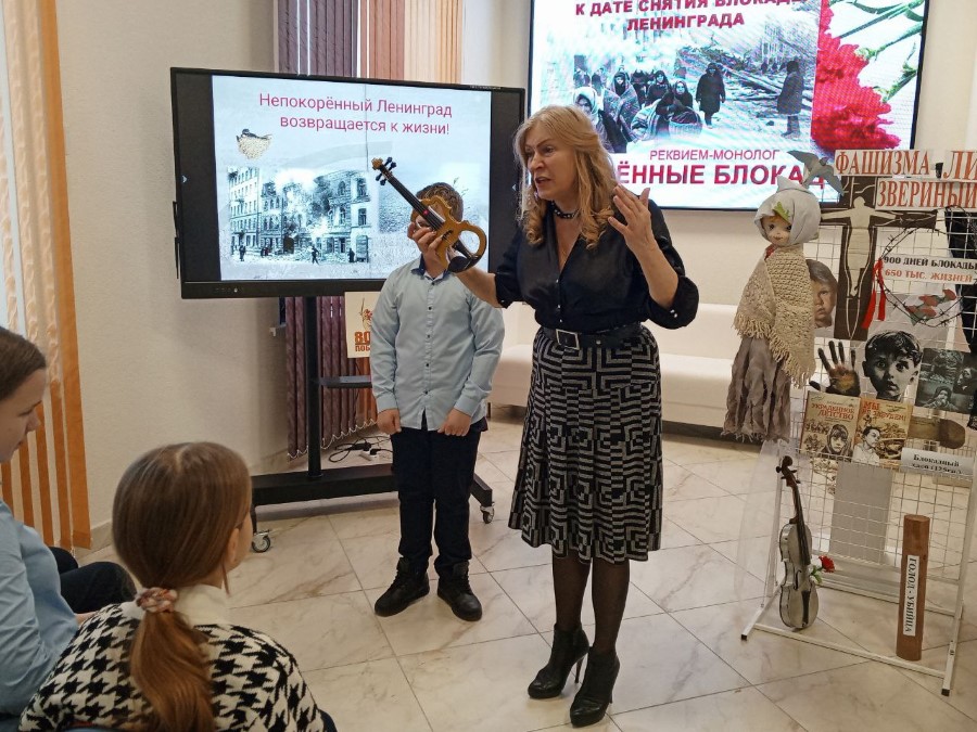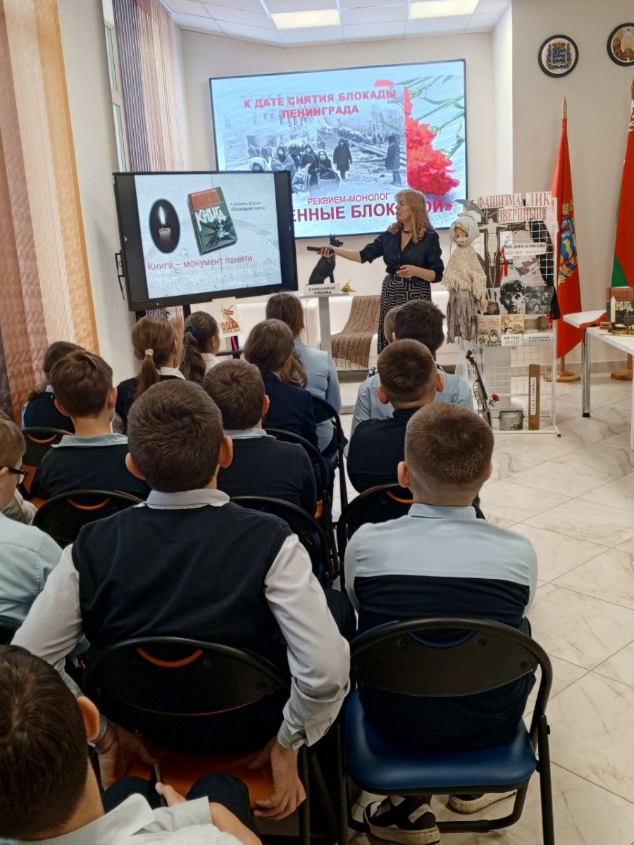 Но израненный, измученный Ленинград выстоял, являя примеры крепости духа и благородства вопреки неслыханным страданиям и мучениям. Реквием-монолог «Крещенные блокадой», который сотрудники ГУК «Березинская центральная районная библиотека» представили учащимся СШ № 2 по воспоминаниям жертв блокады - это раскалённая память о том времени, когда жизнь и смерть сошлись предельно близко. Это гневное обличение фашизму с его звериным ликом и напоминание современникам о том, что война - это трагедия и горе.