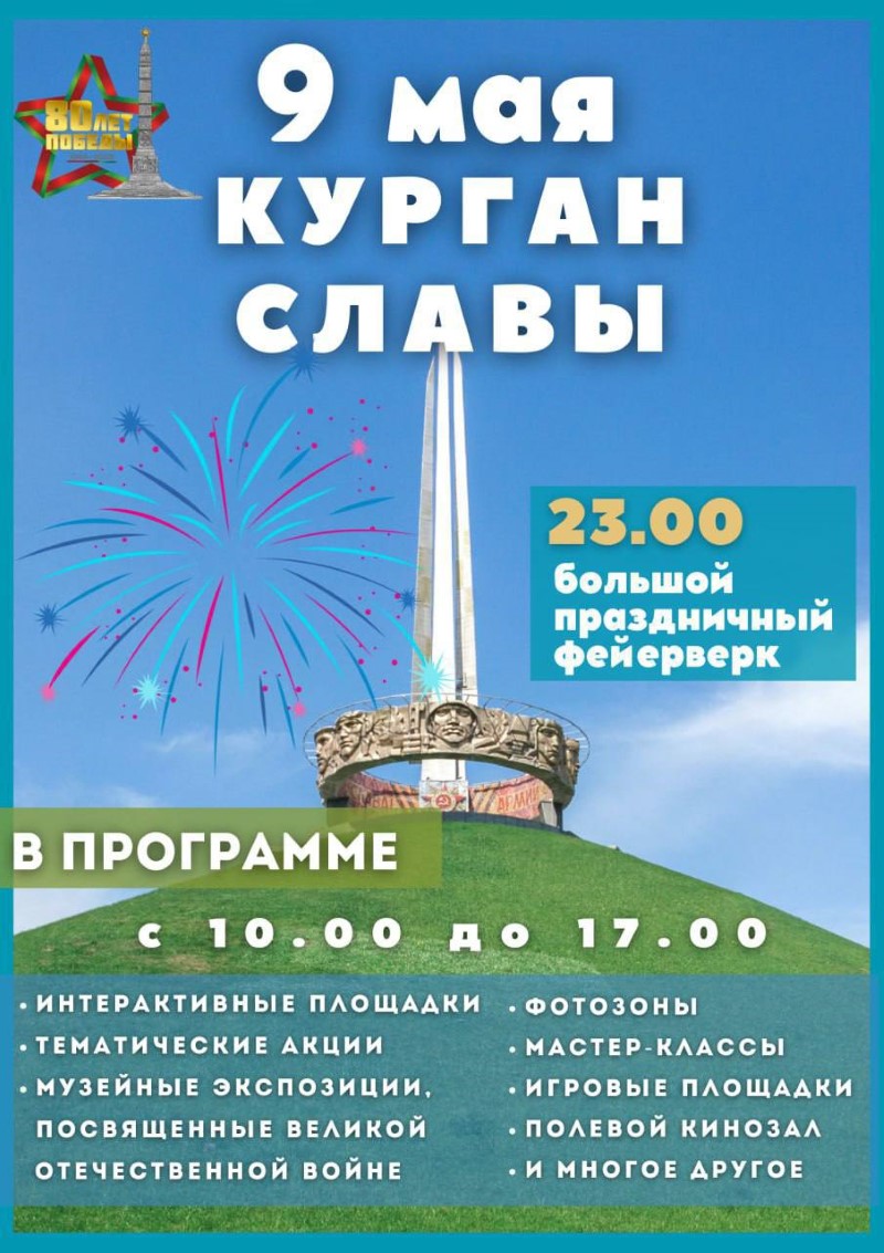 И, конечно, завершение праздника - исполнение песни "День Победы" и фейерверк, который озарит небо над Курганом Славы!