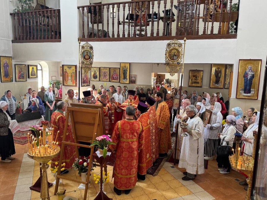 После богослужения священство благочиния, прихожане и паломники совершили Праздничный Крестный ход, который возглавил настоятель прот. Илья.