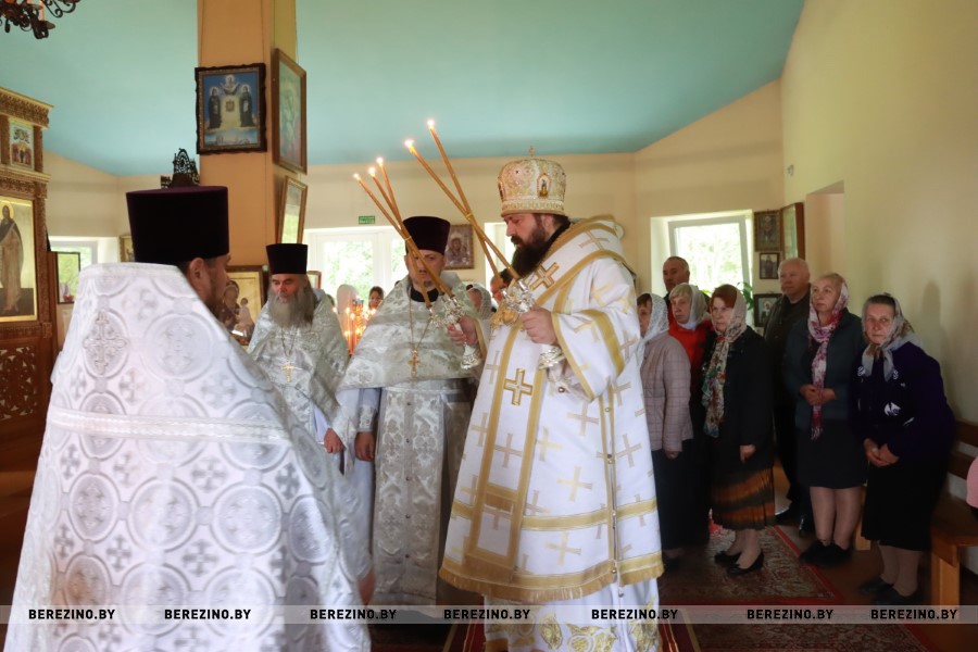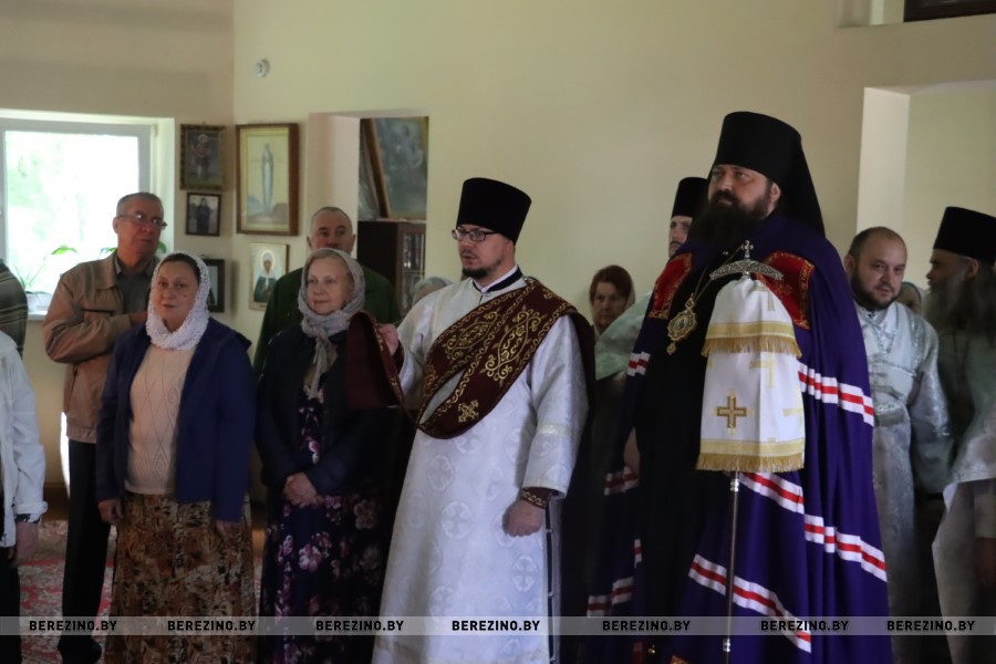 Сослужили Преосвященнейшему владыке секретарь Борисовского епархиального управления протоиерей Александр Вербило, благочинный Березинского церковного округа протоиерей Илья Гончарук, настоятель храма святого пророка Илии д. Божино иерей Валерий Юриков.