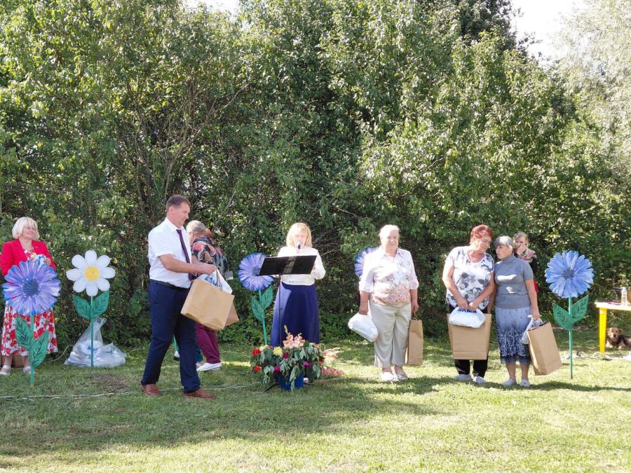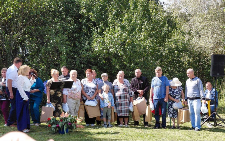 Праздник начался из приветственных слов председателя сельского Совета Натальи Дубовик. Затем на площадку вышел директор СУП "АгроМАЗ" Анатолий Дроздов и всем жителям проработавшим в хозяйстве более 20 лет вручил подарки.