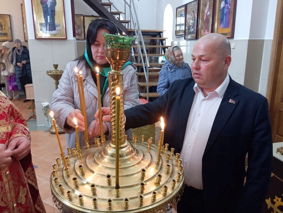 Во встрече благодатного огня приняли участие председатель Березинского райисполкома Андрей Соколовский и его заместитель Алеся Титова.