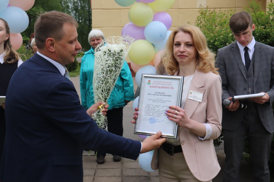 Словы настаўлення і добрых пажаданняў выпускнікам, а таксама ўдзячнасці бацькам і педагогам прагучалі ад кіраўніка справамі Бярэзінскага райвыканкама Міхаіла Бурцава, начальніка ўпраўлення па адукацыі, спорце і турызме Алесі Цітовай, дырэктара навучальнай установы Наталлі Бурцавай.