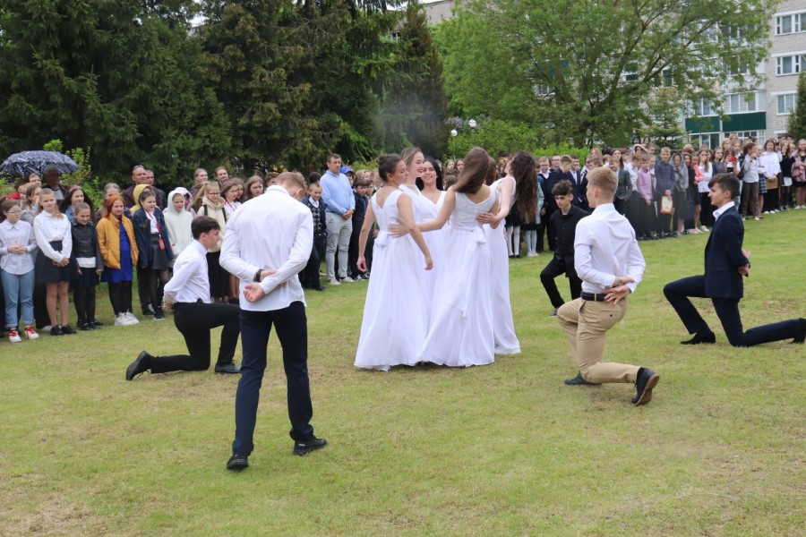Напрыканцы выпускнікі ўпрыгожылі ўрачыстасць цудоўным вальсам з выдатнай харэаграфіяй.