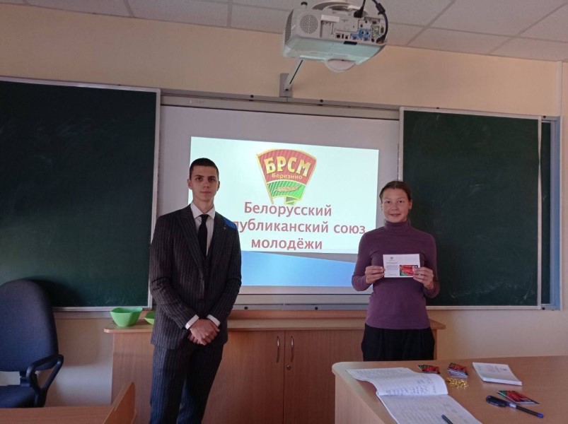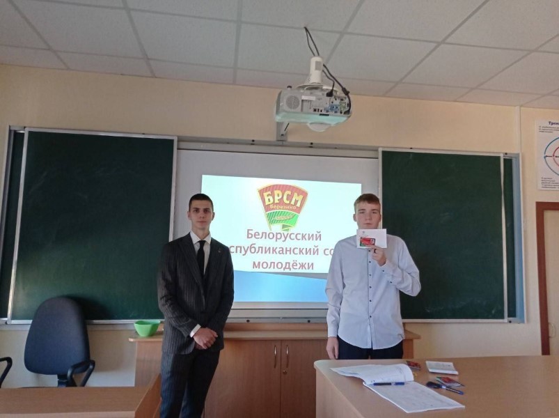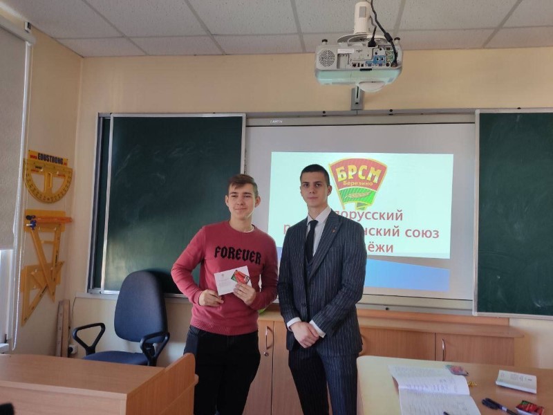 Новобранцев принимали в торжественной обстановке в ГУО « Березинская гимназия» секретарем ПО БРСМ Александром Кардралем.