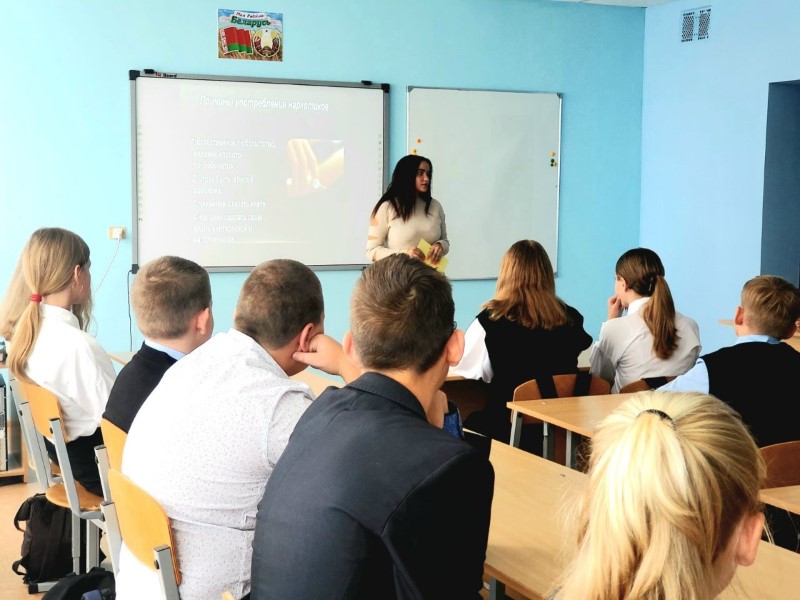 В рамках межведомственной информационной акции «Наркотики. Ответственность. Последствия» для учеников 9"Б"класса ГУО" СШ3" г. Березино молодой специалист районного центра культуры Екатерина Страховская провела беседу-презентацию "Скажи наркотикам-нет".