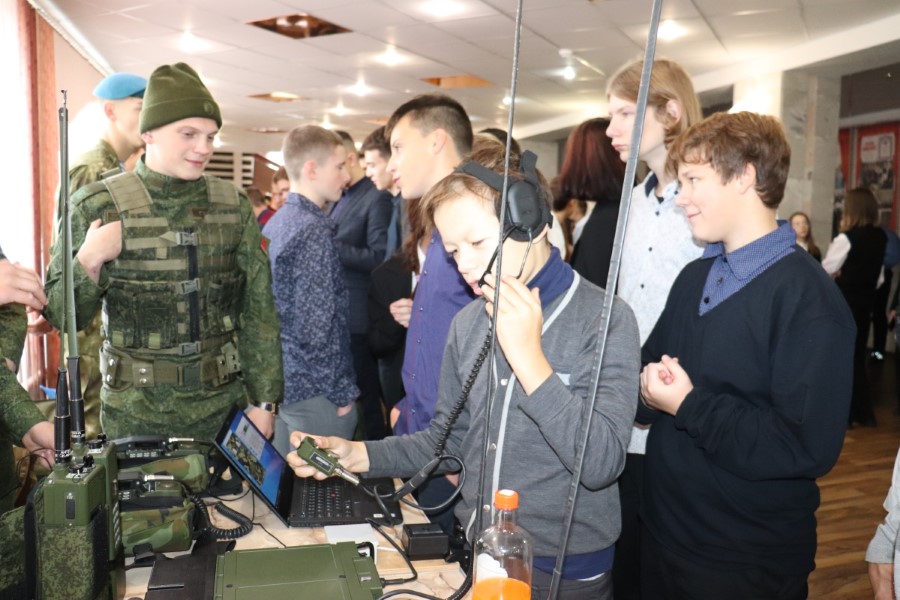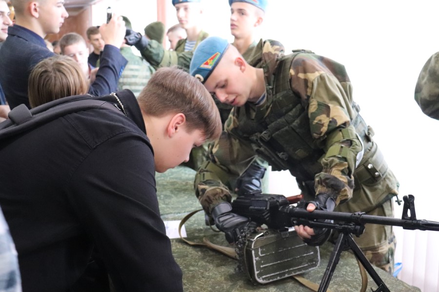 Ребята услышали об учёбе в Военной Академии, о нюансах подготовки и жизни курсантов, о разных аспектах военной науки, посмотрели фильм о данном учебном заведении «Я курсант и этим горжусь», посмотрели выступление курсантов факультета военной разведки. В фойе можно было познакомиться с образцами вооружения, подержать в руках стрелковое оружие и прочее.