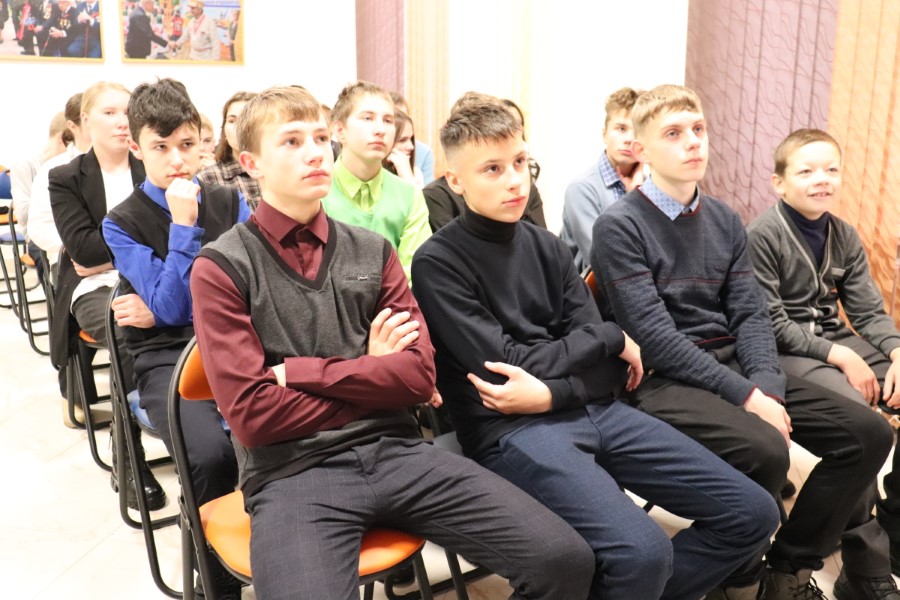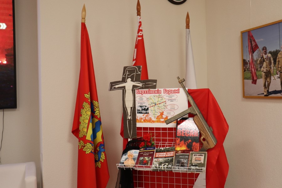 Вядучая, загадчыца аддзела маркетынгу цантральнай раённай бібліятэкі Тамара Круталевіч, расказала вучням пра падзеі ваеннага ліхалецця, напомніла пра Хатынь, а таксама вёскі, знішчаныя на Бярэзіншчыне падчас вайны батальёнам СС пад камандваннем Дзірлівангера.