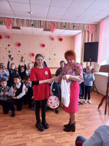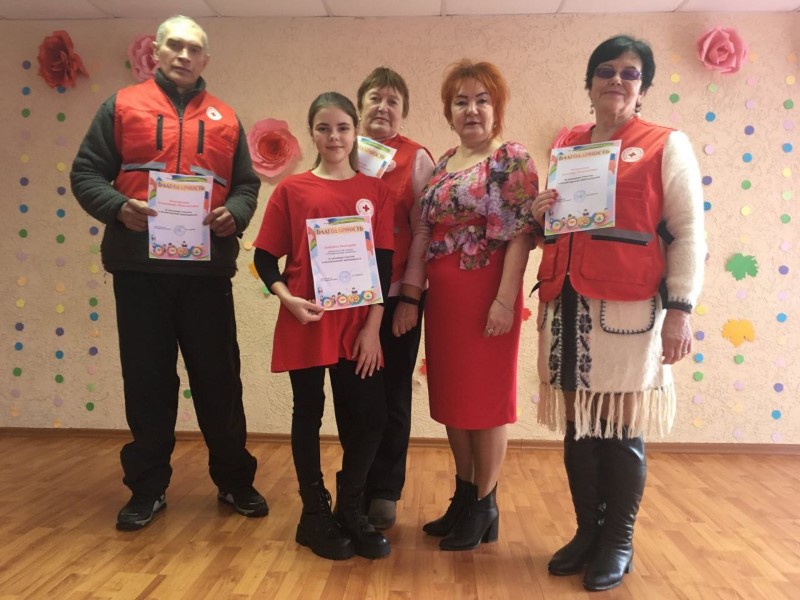 На базе ГУО ''Начальная школа" Председатель РО Красный Крест Ирина Леонидовна Дубовик наградила волонтеров-активистов клуба ''От сердца к сердцу'' Автухович Р.М, Клименко Т.А и Коновалова В Н за активное участие в волонтерской деятельности, а так же ребят волонтерского отряда ''Непоседы''.