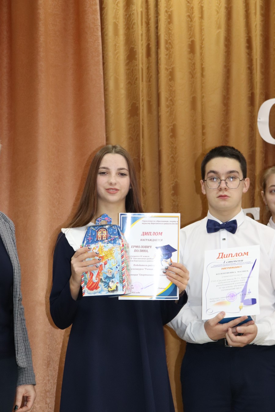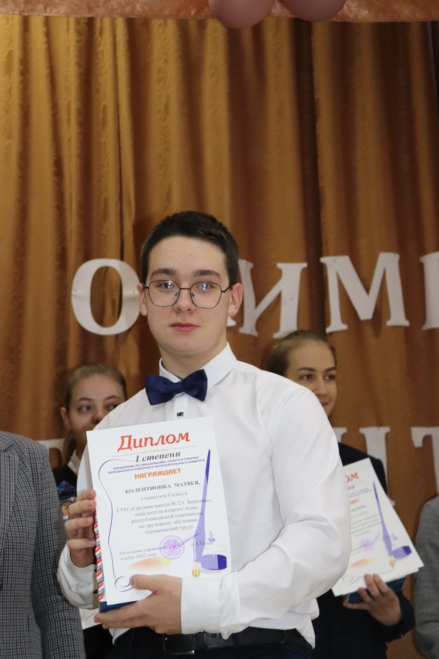 Награды из рук заместителя начальника управления по образованию, спорту и туризму Аллы Петрукович получили 15 олимпийцев и 4 победителя конкурса «Ученик года Минской области 2022». Благодарственные письма были вручены 10 березинским педагогам. Трогательным моментом церемонии стало награждение родителей, воспитавших талантливых учеников.