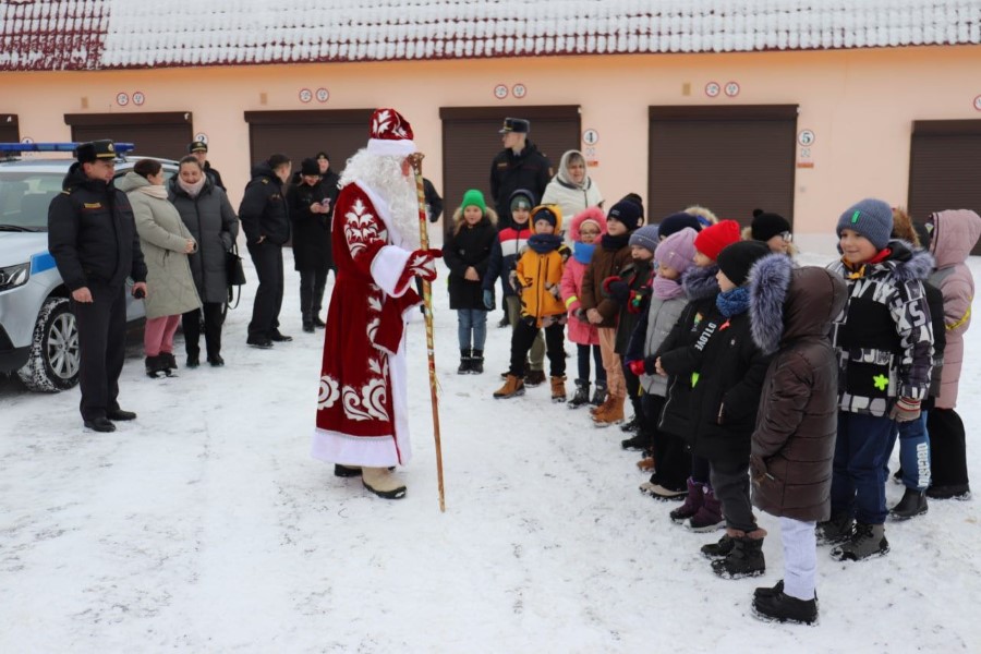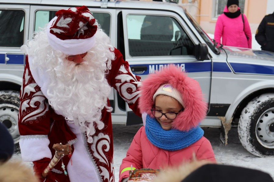 Кульминацией праздника стал вызов по рации Деда Мороза. Дедушка прибыл не по старинке на санях, а вполне по современному – в автомобиле, в нашем случае на милицейской «Ниве» с мигалками и сиреной. В багажнике машины лежал огромный мешок с подарками. После стишка и песни, которую дети спели все вместе, каждый получил по подарку.