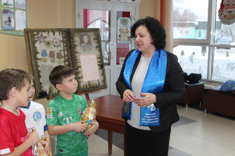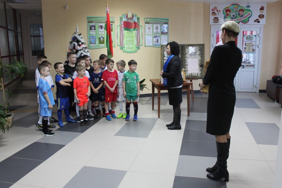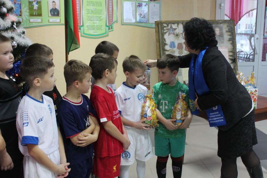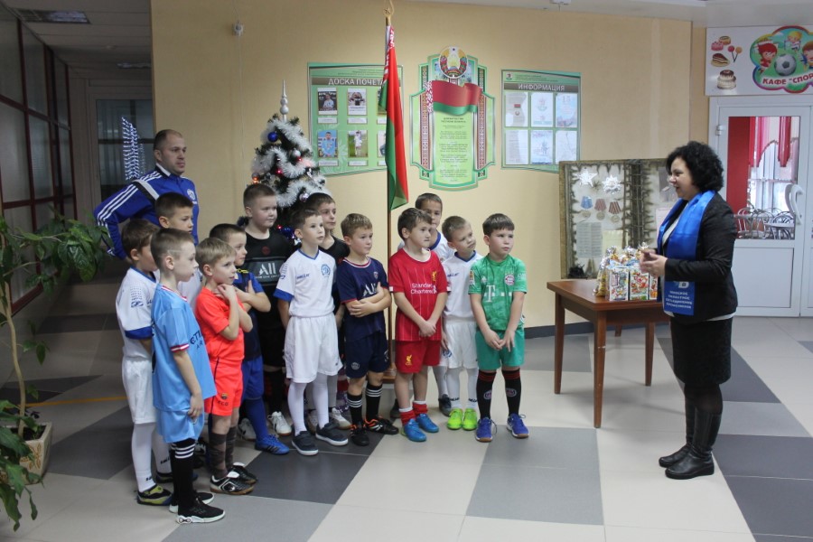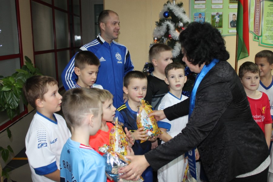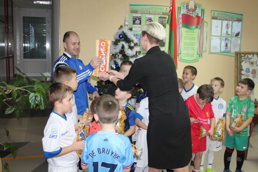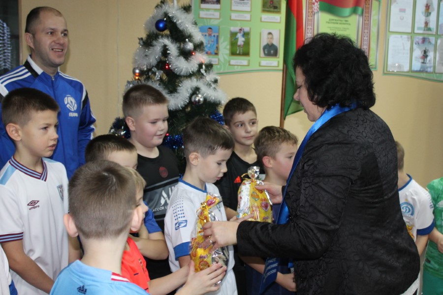 Однако подаркам рады не только дети. Первый секретарь Березинского райкома БРСМ Екатерина Аврамчик вручила новогодний сувенир и футбольному тренеру Сергею Булойчику.