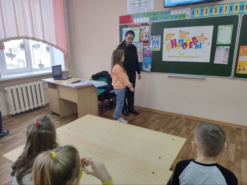 Юлия Владимировна во время беседы с учащимися младших классов привела примеры ДТП с участием несовершеннолетних на территории Минской области.