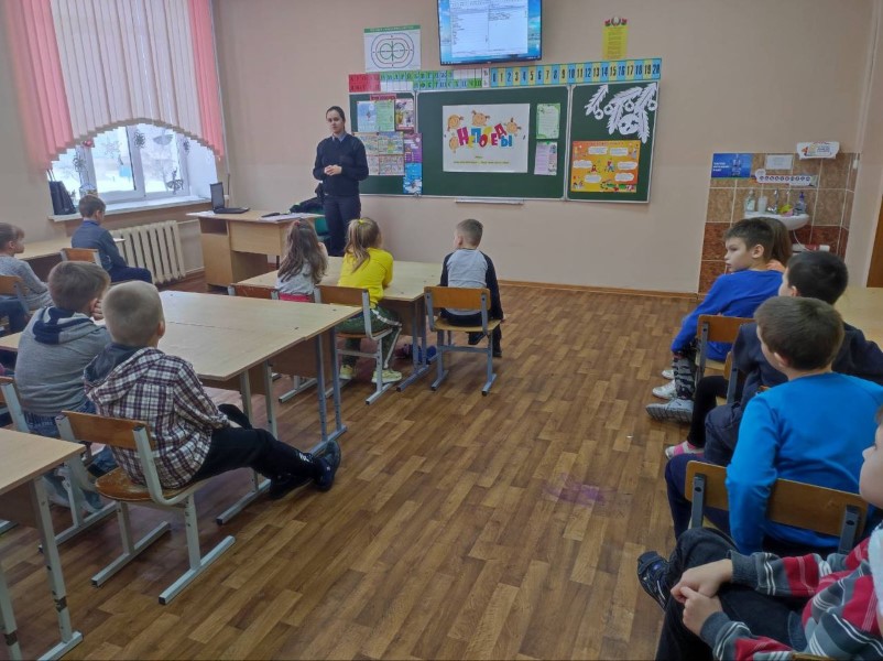27 декабря 2022 года в рамках профилактической акции «Безопасные каникулы!», а также в рамках профилактики детского дорожно-транспортного травматизма, Старший инспектор по АП ОГАИ Березинского РОВД Камеко Юлия Владимировна провела профилактическое мероприятие с демонстрацией роликов профилактической направленности в ГУО «Начальная школа г. Березино».