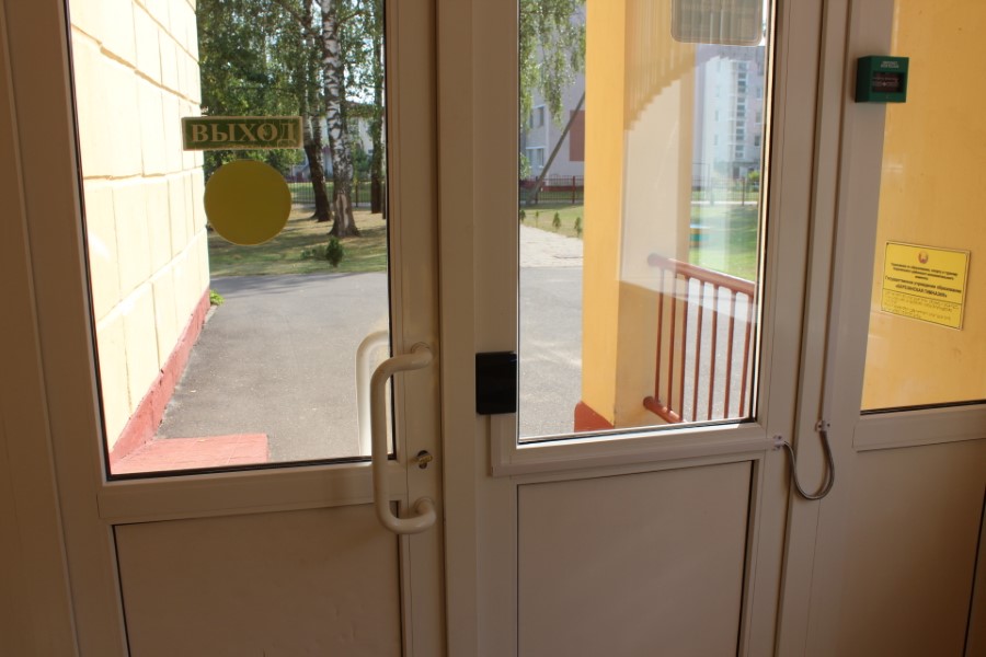 В Березинской гимназии к вопросам охраны ставятся с особым вниманием – как и в любом другом учреждении. Здесь по периметру расположено 9 видеокамер, данные с которых поступают на пост контролера, идет постоянное видеонаблюдения в холе, снаружи главного входа, а также запасные (тыльные) входы-выходы. Входные двери оборудованы электрозамками, которые не пропустят никого постороннего. Однако во время пожара они разблокируются.