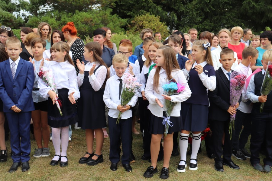 В торжественной линейке, посвященной Дню знаний, приняли участие почётные гости - заместитель председателя Минского областного отделения Белорусского Фонда мира Павел Негай, начальник отдела организационно-кадровой работы Березинского райисполкома Ольга Мельниченок, главный специалист управления по образованию, спорту и туризму Березинского райисполкома Наталья Синяк, заместитель начальника Березинского РОЧС Александр Лагун, благочинный Березинского церковного округа протоиерей Илья Гончарук.
