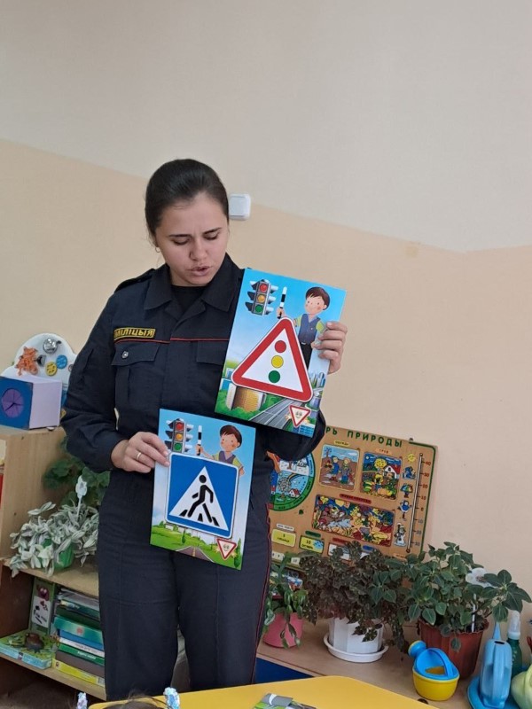 Юлия Владимировна напомнила ребятам как правильно переходить проезжую часть дороги. Ребята активно отвечали на вопросы по знанию Правил дорожного движения и вспомнили дорожные знаки. В рамках мероприятия деткам были розданы световозвращающие элементы.