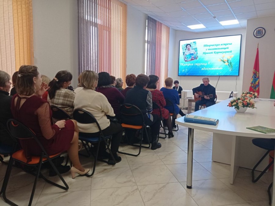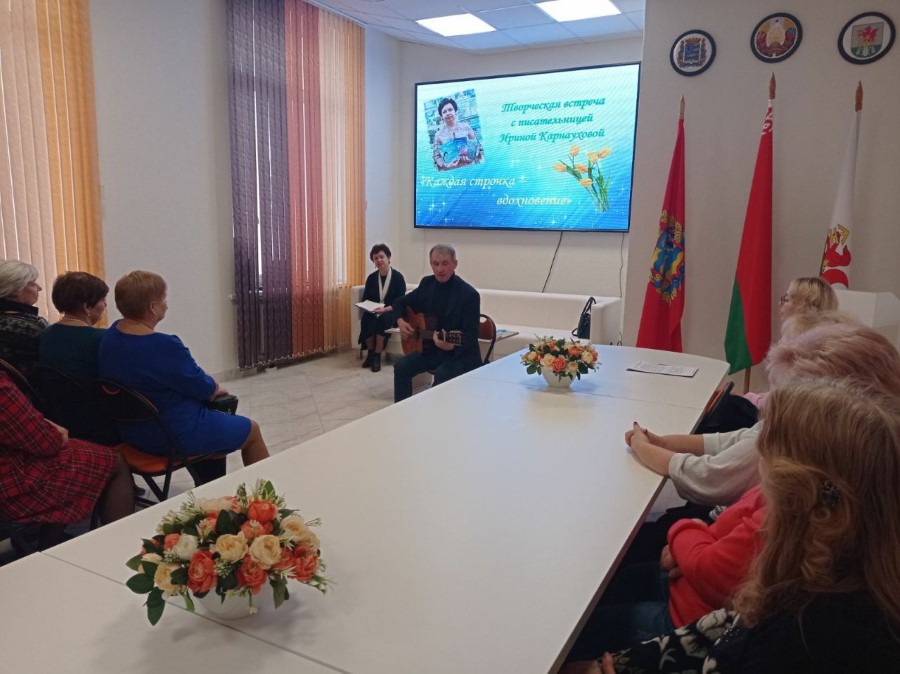 В преддверии самого нежного весеннего праздника в Березинской библиотеке прошла творческая встреча с литератором, музыкантом, автором многих книг для детей и взрослых, членом Союза писателей Беларуси и Союза писателей СНГ Ириной Карнауховой. Известна она и как бессменный руководитель клуба «Живица» Минского областного центра народного творчества, собравшего в своих рядах многих поэтов и музыкантов