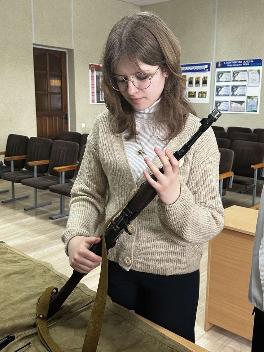 После беседы милиционер познакомил гостей с образцами оружия и экипировки, которые сейчас находятся на вооружении правоохранителей.