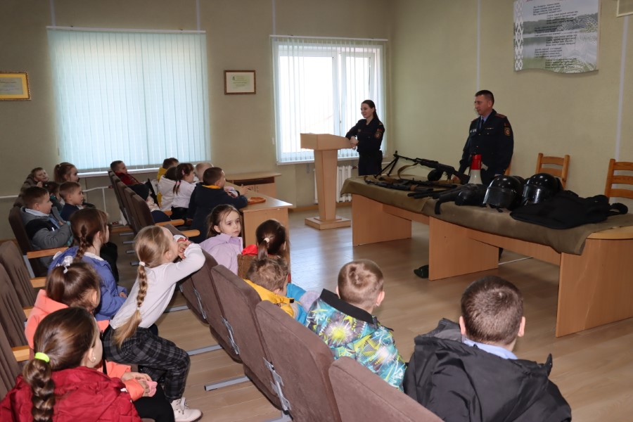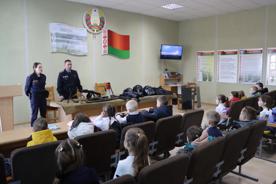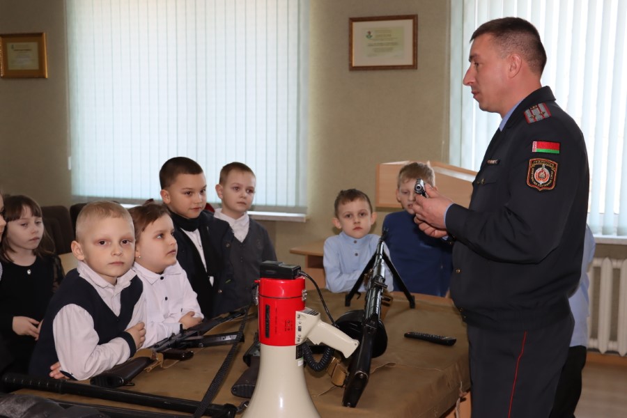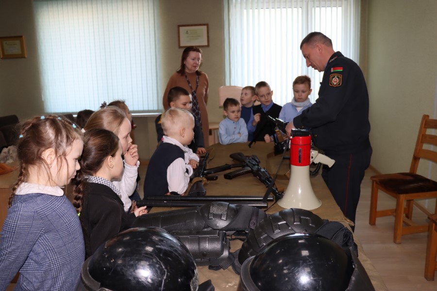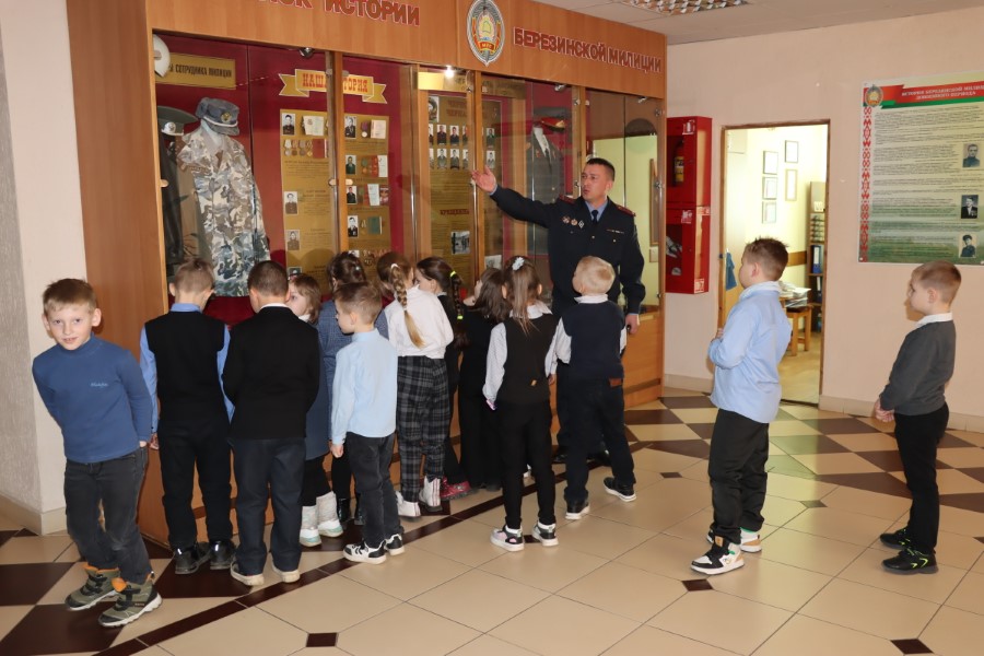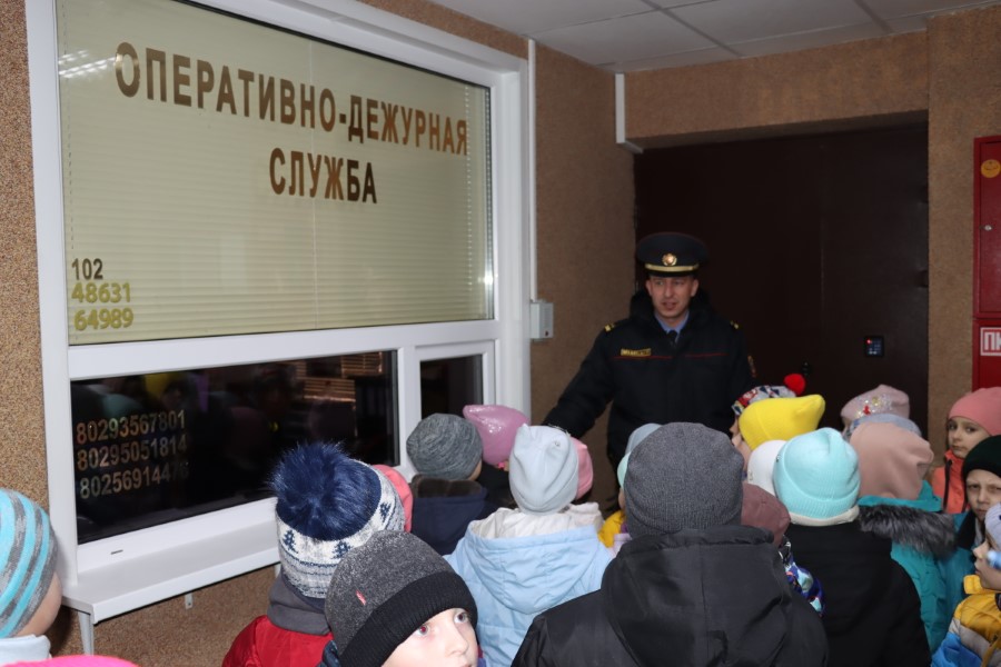 Экскурсия началась с оперативно-дежурной службы, где заместитель начальника Березинского РОВД Геннадий Рабиза рассказал маленьким гостям, куда поступают звонки и обращения граждан по телефону 102 и многое другое.